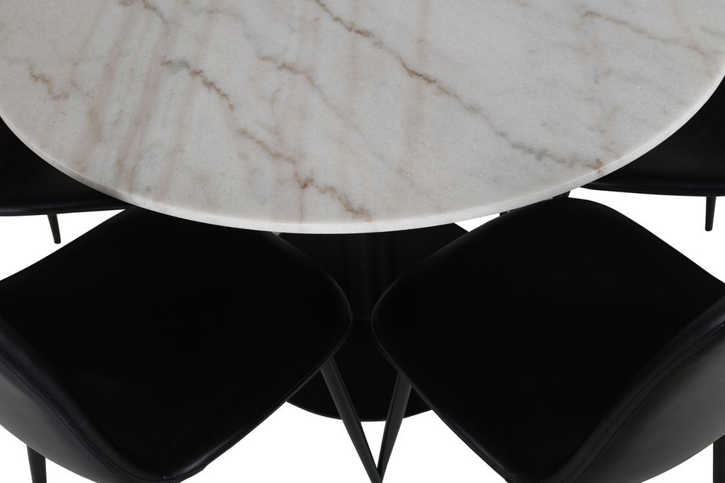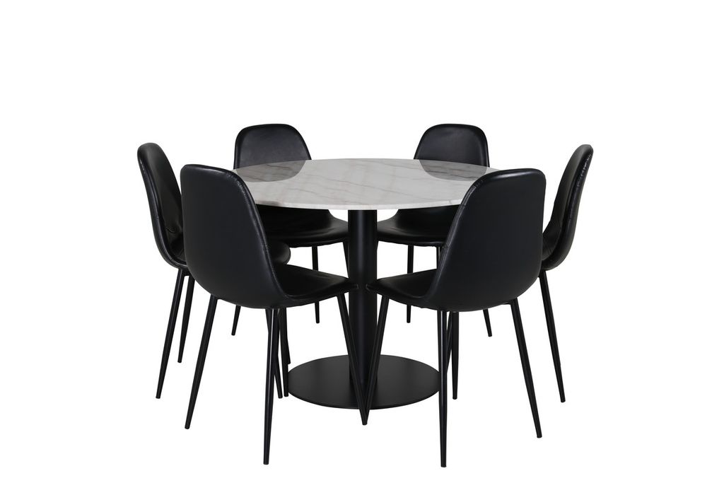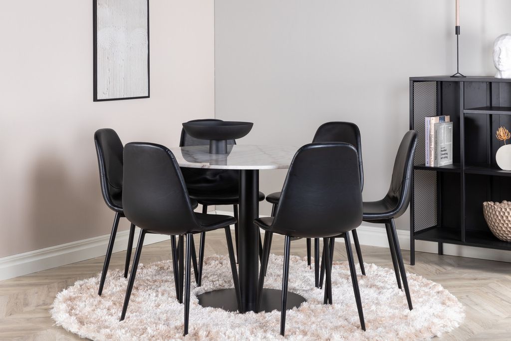 Venture Home Polar & Estelle 6 st Matstolar Svart + Runt Matbord ⌀106 Vit
