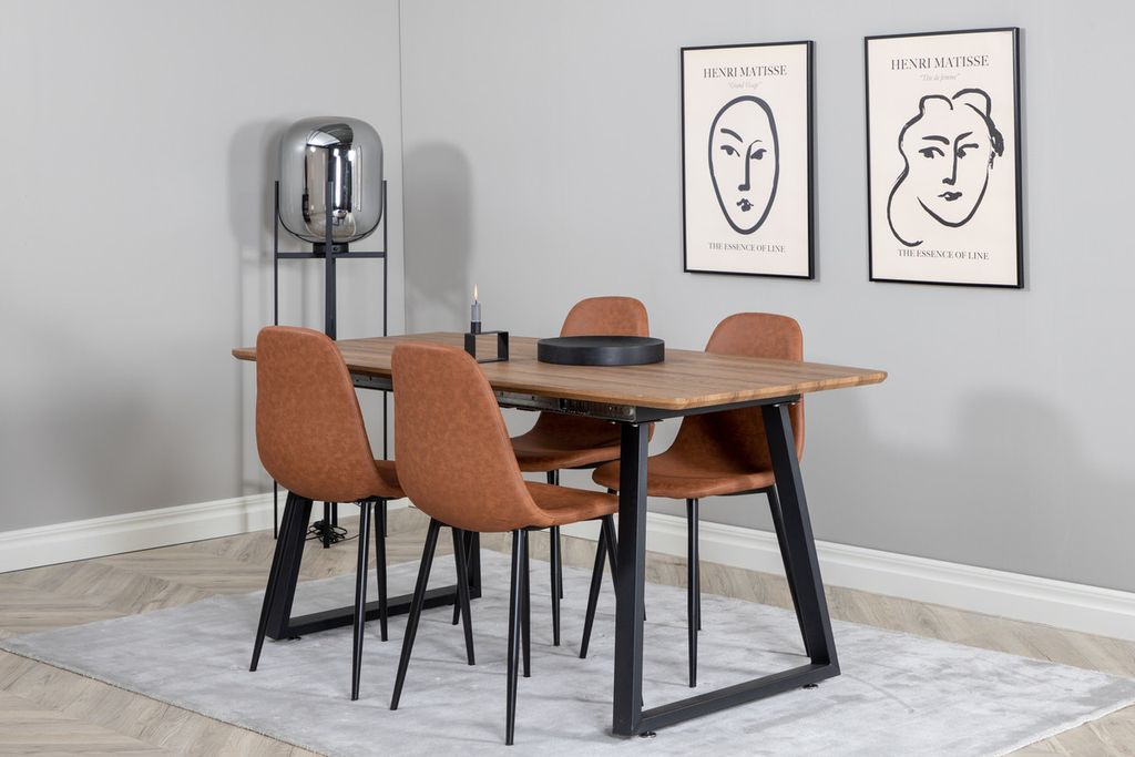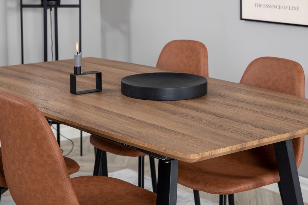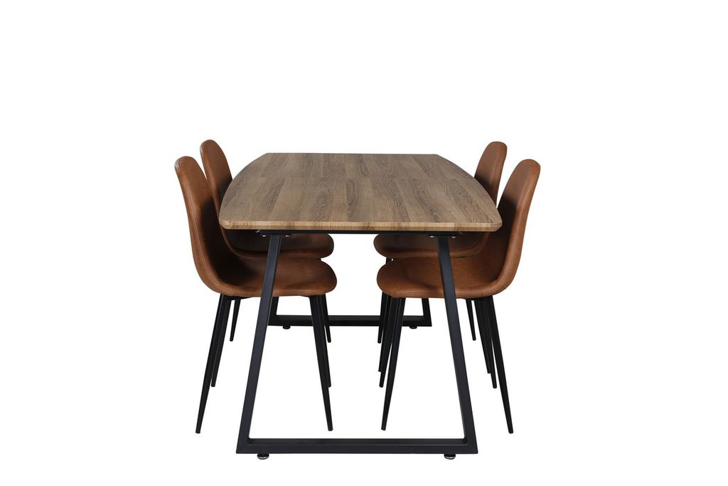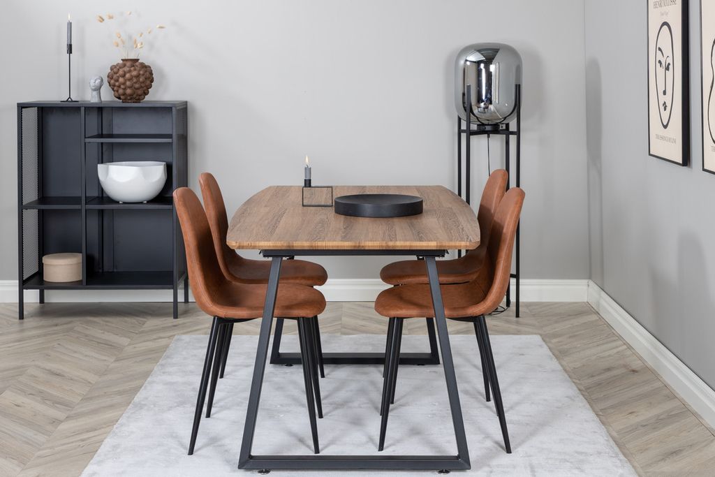 Venture Home Polar & Inca 4 st Matstolar Brun + Rektangulärt Matbord 160 x 85 Valnöt