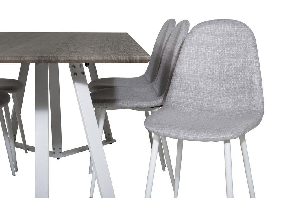 Marina matbord i ett ljust utförande tillsammans med matstolar Polar i ljusgrått tyg. En matgrupp som vill vara en naturlig del av ditt hem.