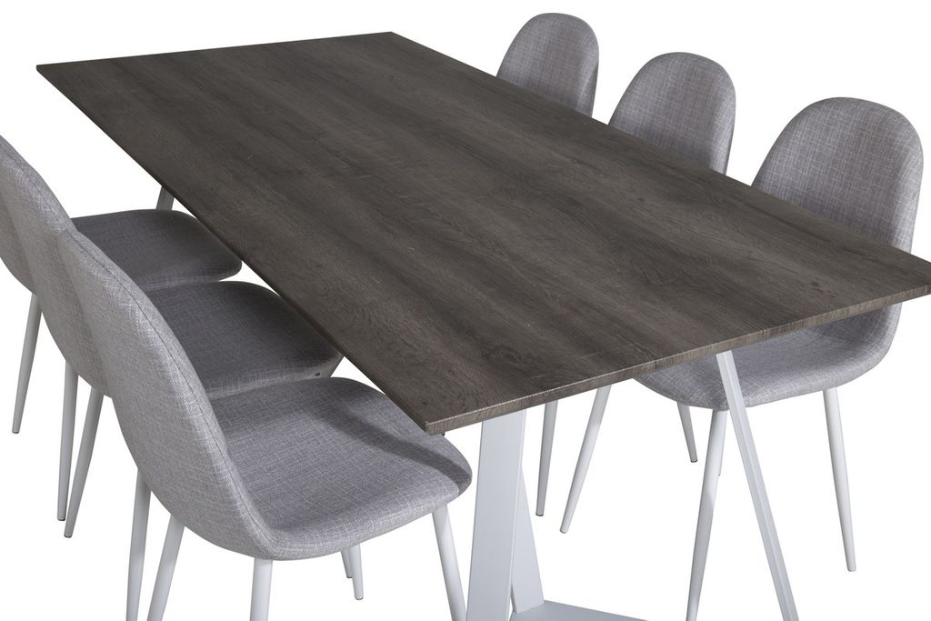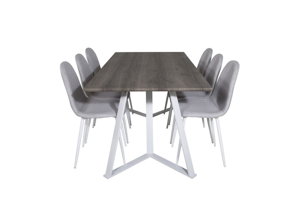 Venture Home Polar & Marina 6 st Matstolar Grå + Rektangulärt Matbord 180 x 90 Grå