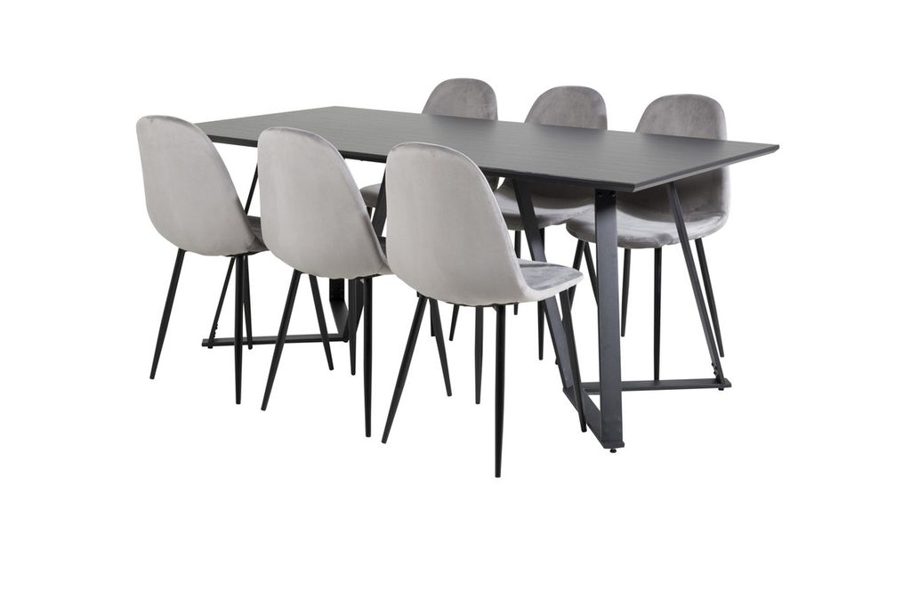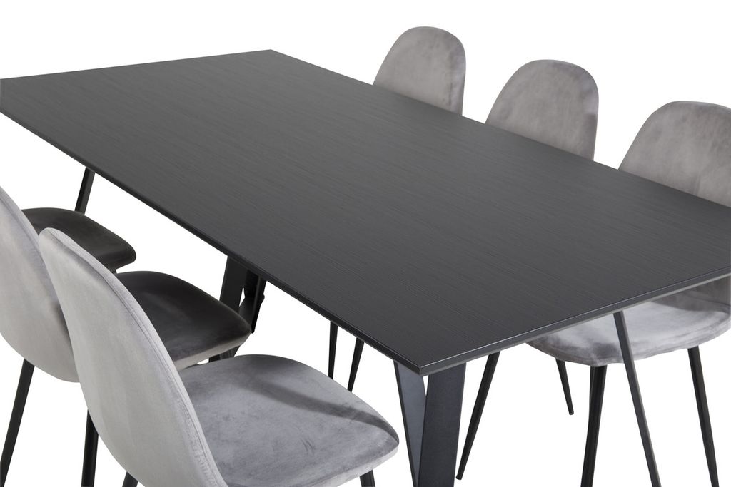 Venture Home Polar & Marina 6 st Matstolar Grå + Rektangulärt Matbord 180 x 90 Svart
