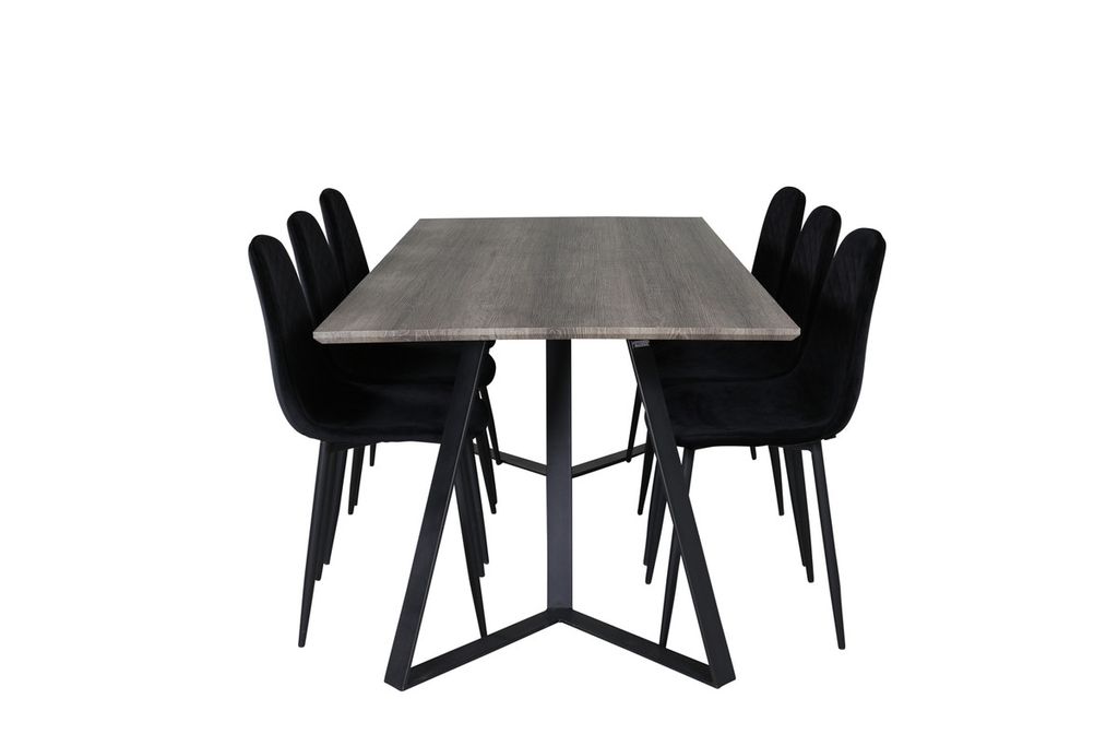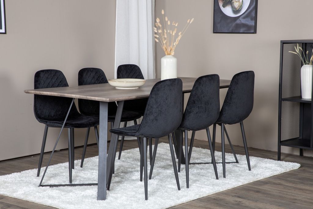 Venture Home Polar & Marina 6 st Matstolar Svart + Rektangulärt Matbord 180 x 90 Natur