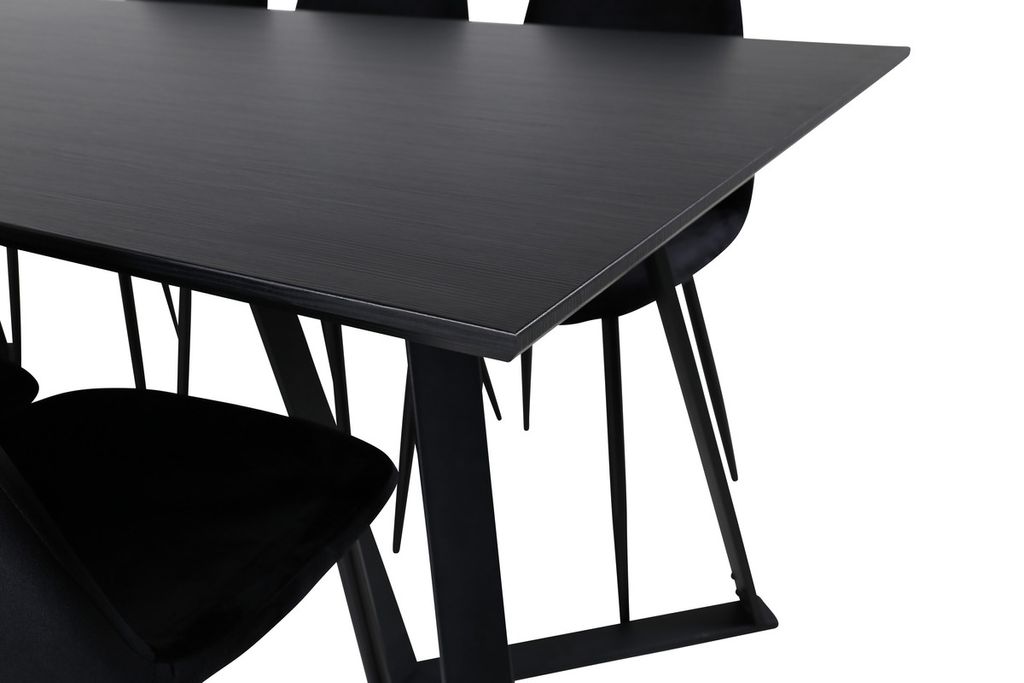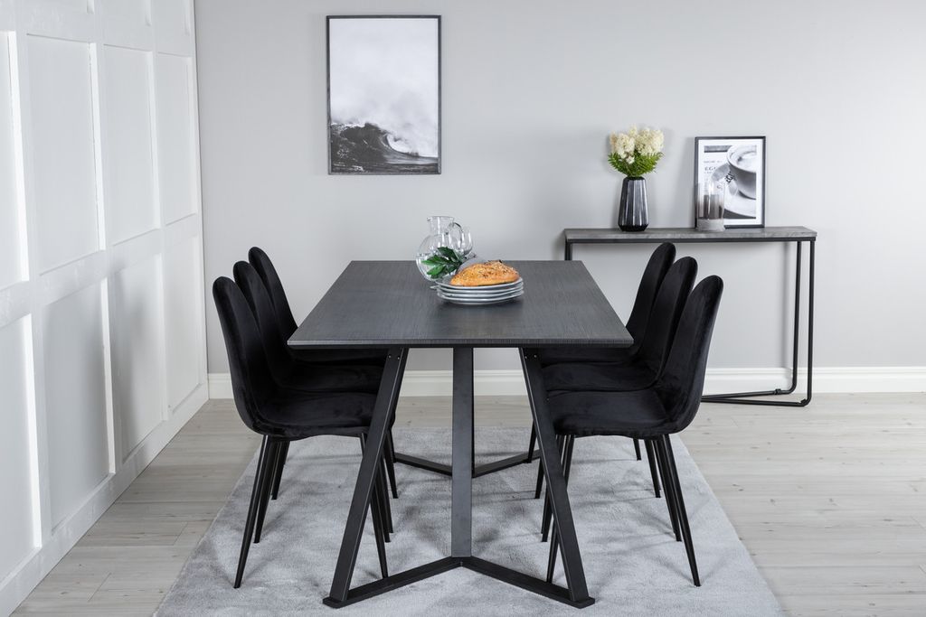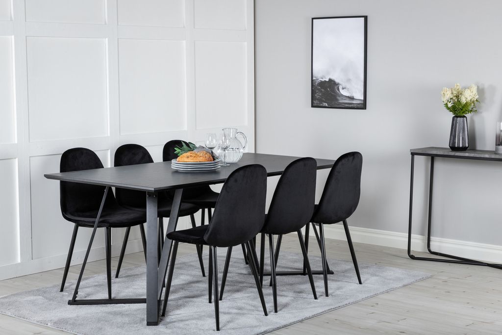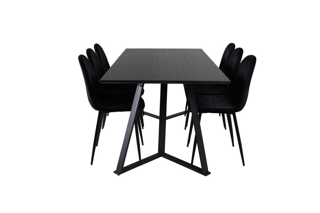 Venture Home Polar & Marina 6 st Matstolar Svart + Rektangulärt Matbord 180 x 90 Svart