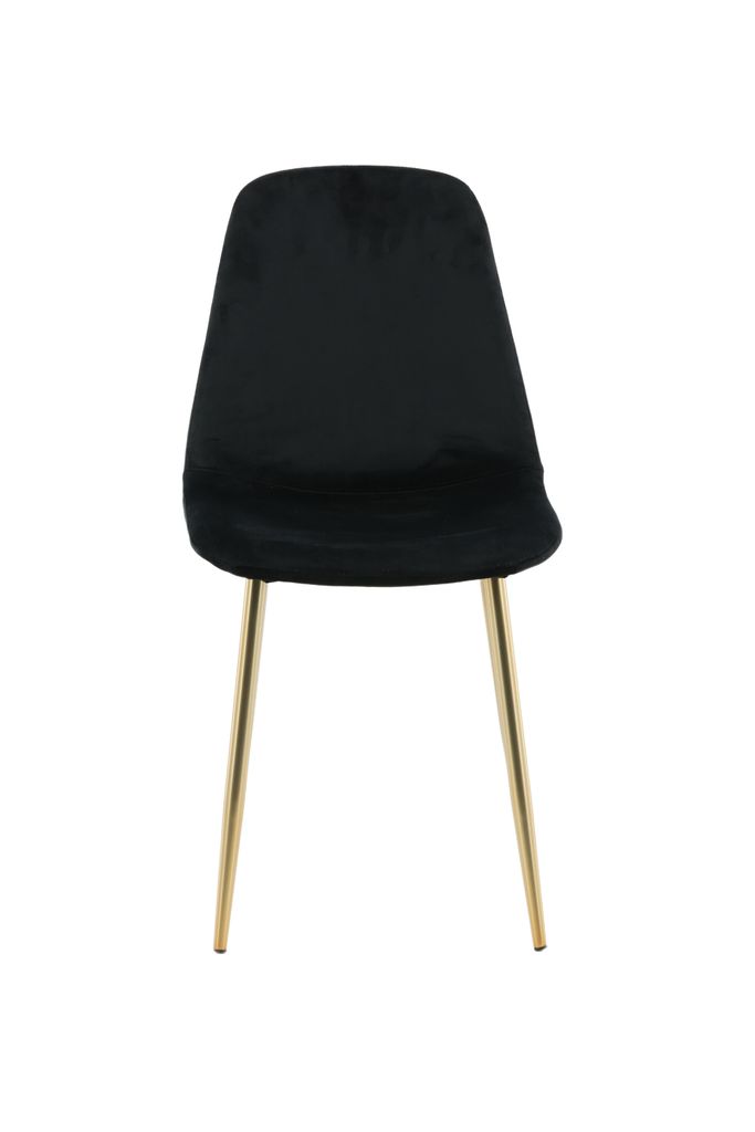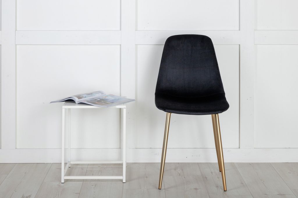 Elegant matstol med svart sammet och mässingsben. Kombinerar design och komfort för ditt hem.