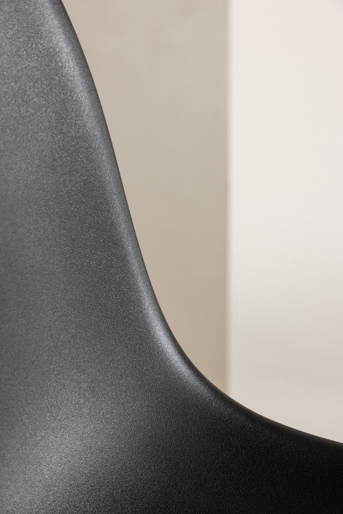 Den släta ytan på plastmaterialet gör stolen enkel att hålla ren och fräsch. En fuktig trasa och ett milt rengöringsmedel är allt som behövs för att upprätthålla deras stilrena utseende. Perfekt för dig som söker både estetik och funktionalitet!