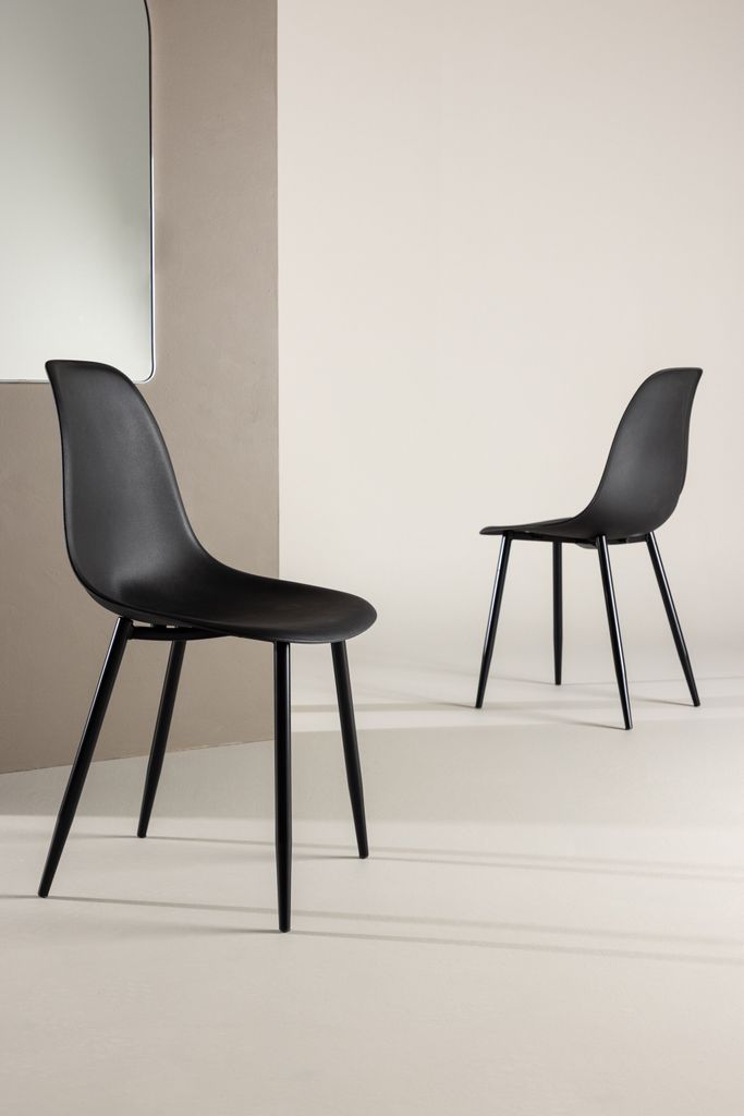 Upptäck Venture Home Polar Matstol 2-pack, en kombination av stil och funktion. Dessa matstolar har en skålformad och rundad design, tillverkade i slitstark svart helgjuten plast, vilket gör dem både moderna och praktiska för dagligt bruk. De eleganta benen i svart pulverlackerad metall ger en stabil och tålig konstruktion.
