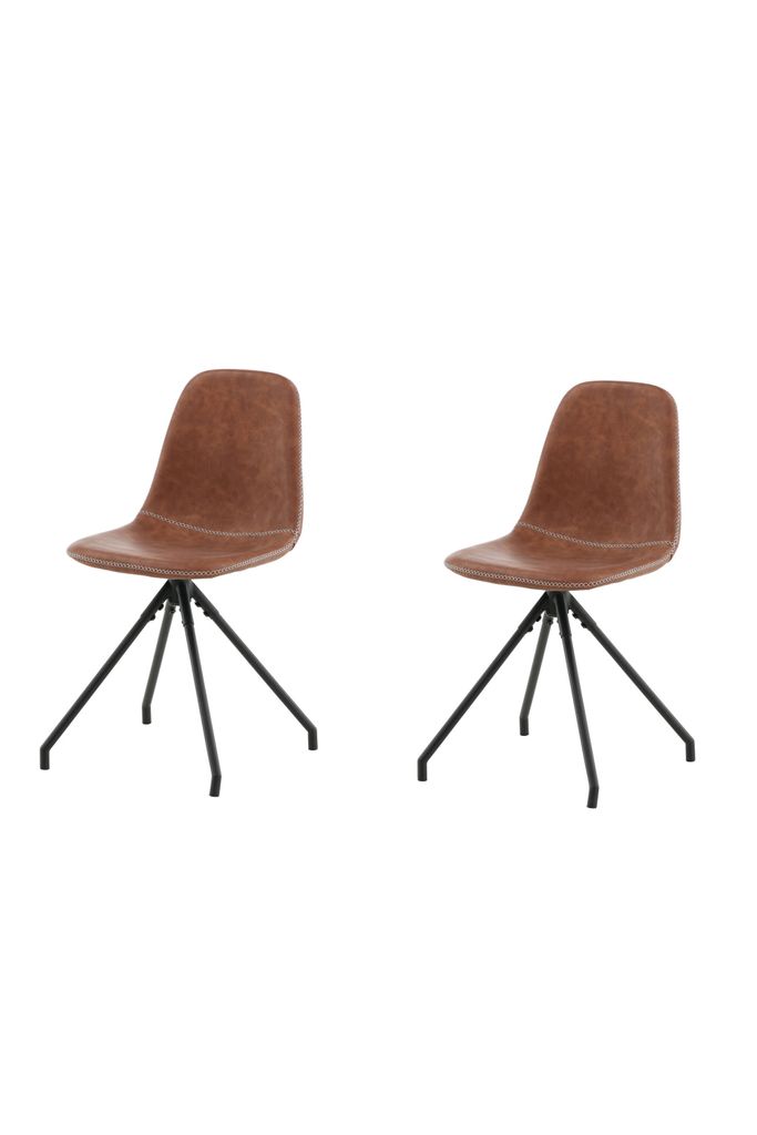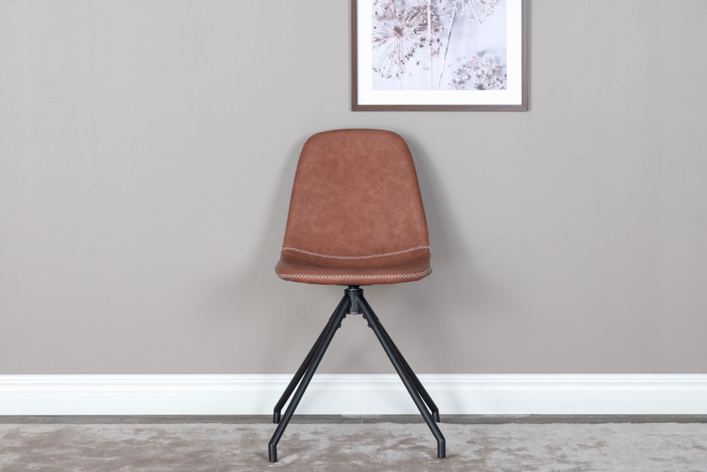 Modern matstol med snurrfunktion och brunt konstläder. Perfekt för stilfulla och bekväma matplatser.