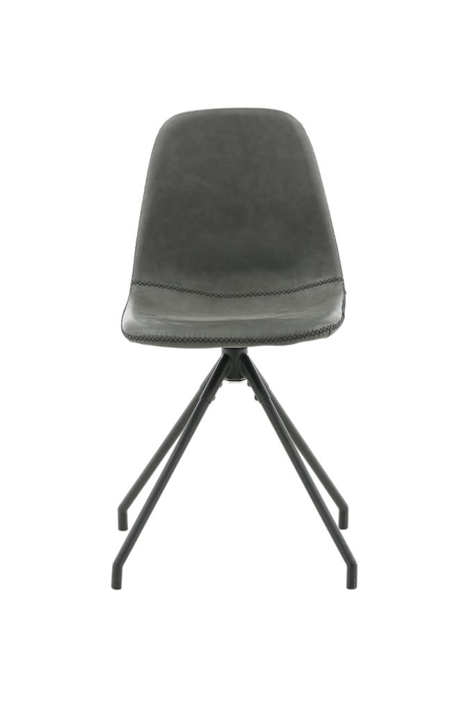 Modern matstol med snurrfunktion i svart konstläder och pulverlackerad metall.