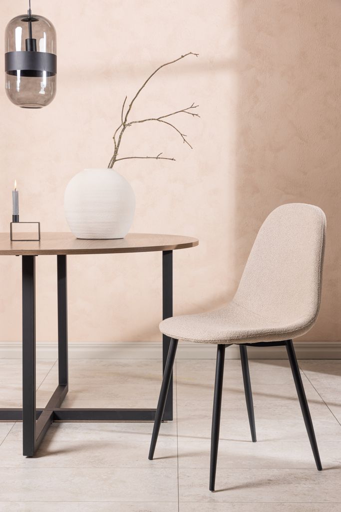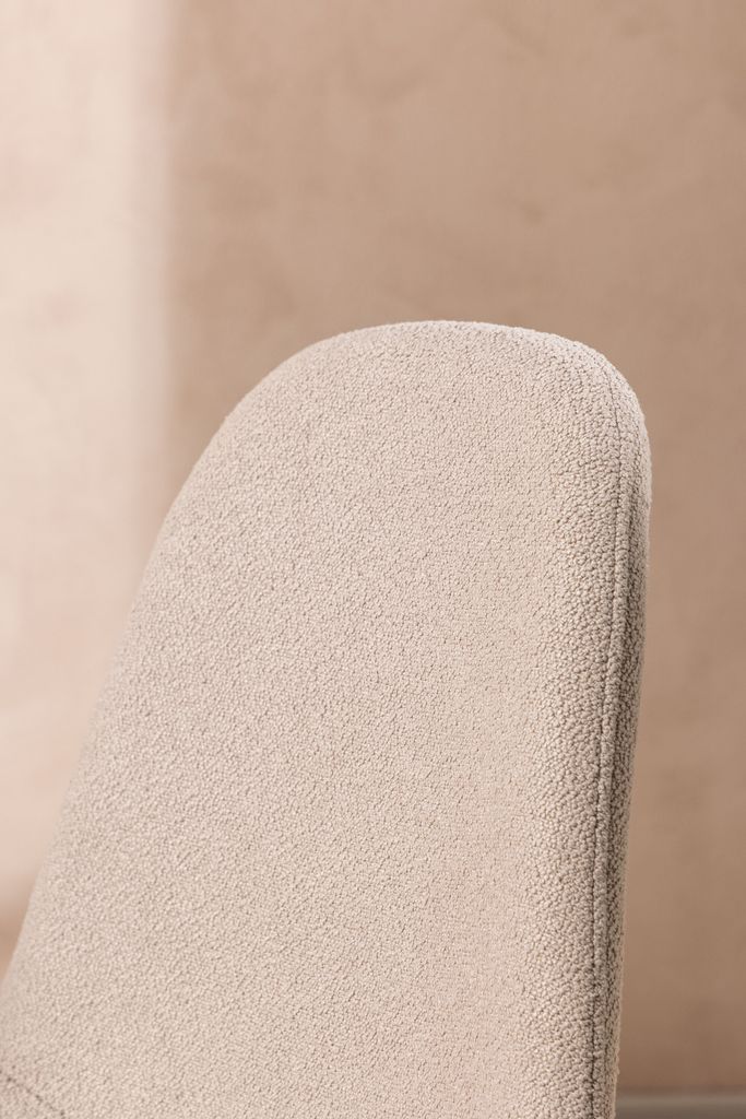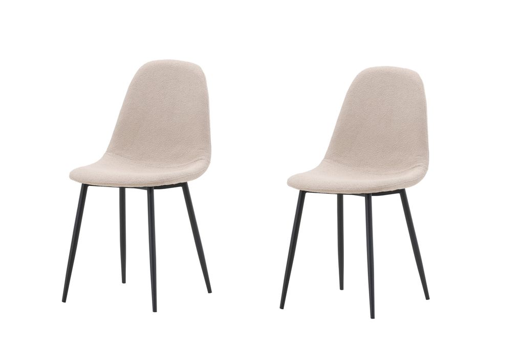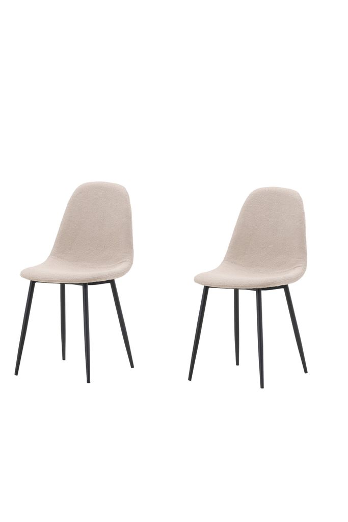 Stilrena Polar matstolar med rundad sits i beige boucletyg och ben i svart metall. Komfort och design i perfekt harmoni.