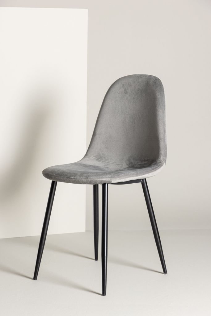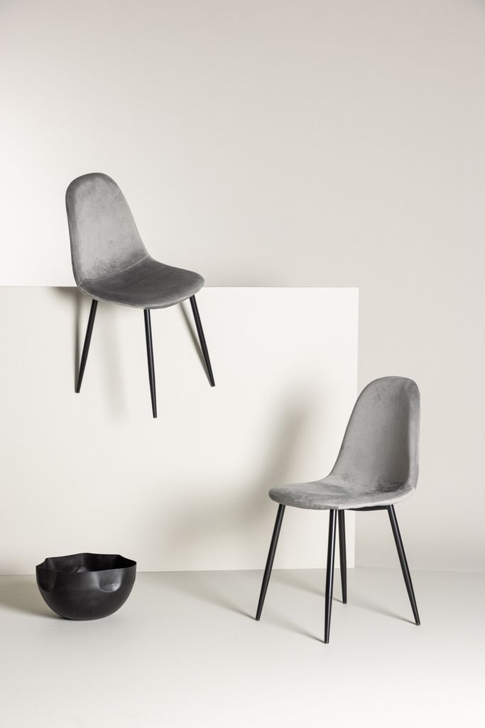 Modern grå Polar matstol i sammet och svart metall. Bekväm och stilren design för ditt hem.