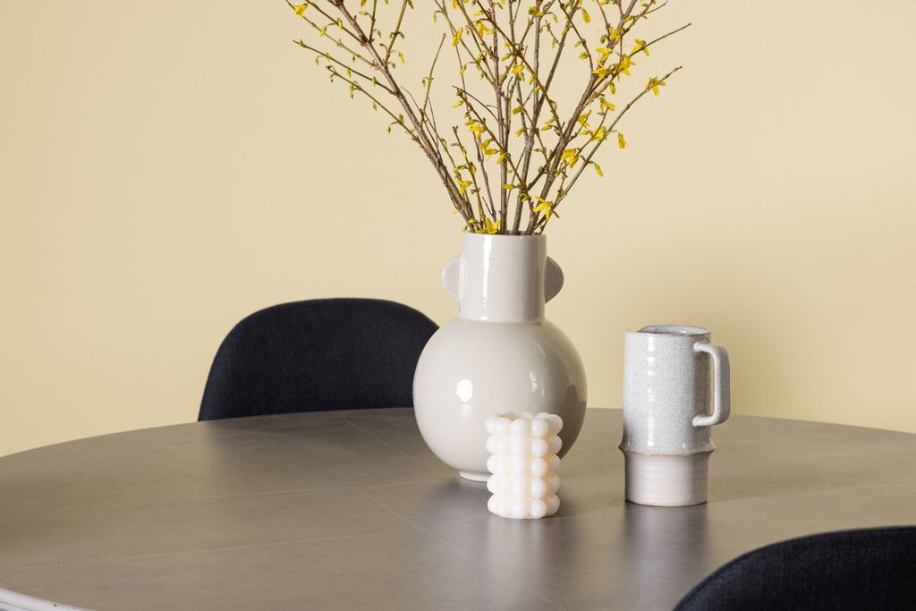 Piazza-bordet har en imponerande diameter på 120 centimeter, vilket ger gott om plats för familj och vänner att samlas kring. Tillverkat av robust sprutsten och förstärkt med stålben, kombinerar det modern design med stil. Den sofistikerade grå färgen ger en touch av elegans till ditt rum.