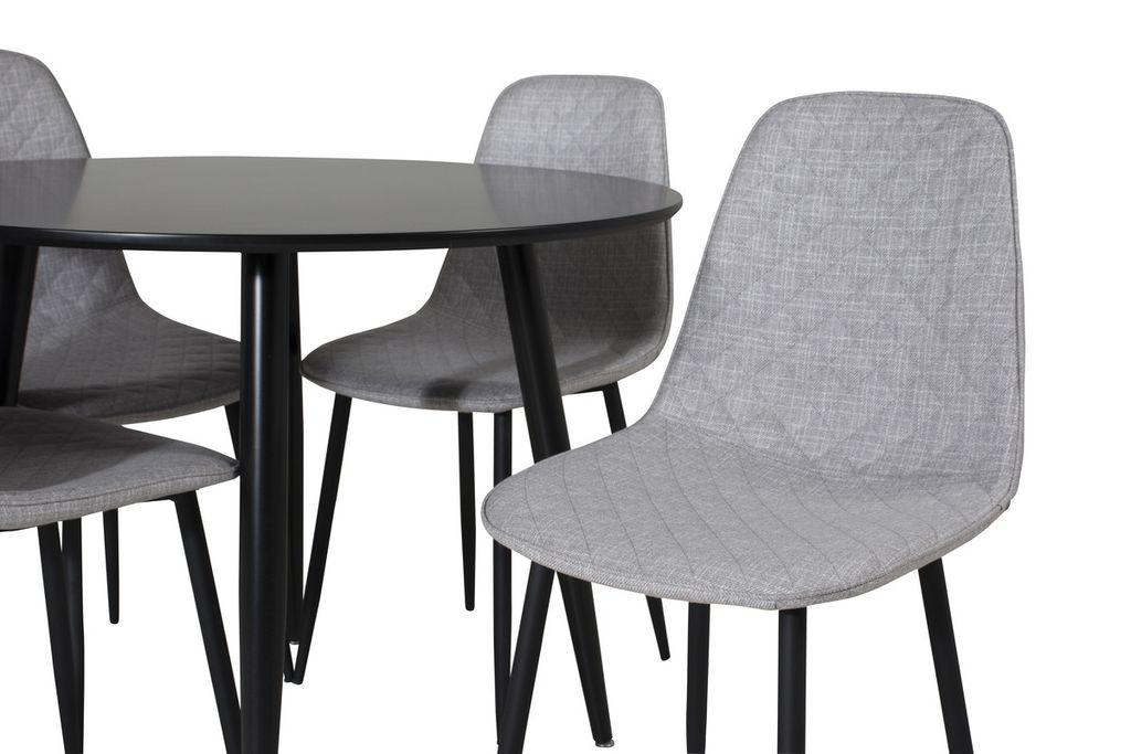 Venture Home Polar & Plaza 4 st Matstolar Grå + Runt Matbord ⌀100 Svart