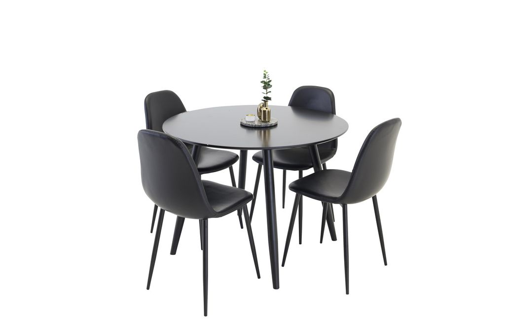 Venture Home Polar & Plaza 4 st Matstolar Svart + Runt Matbord ⌀100 Svart