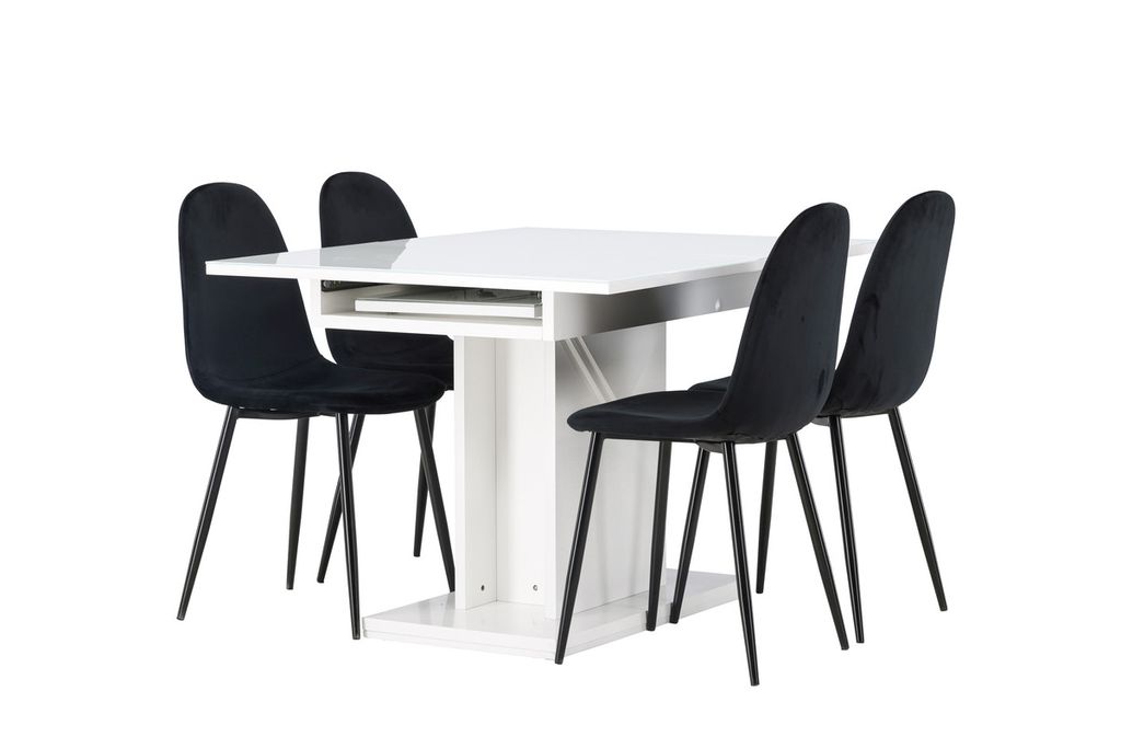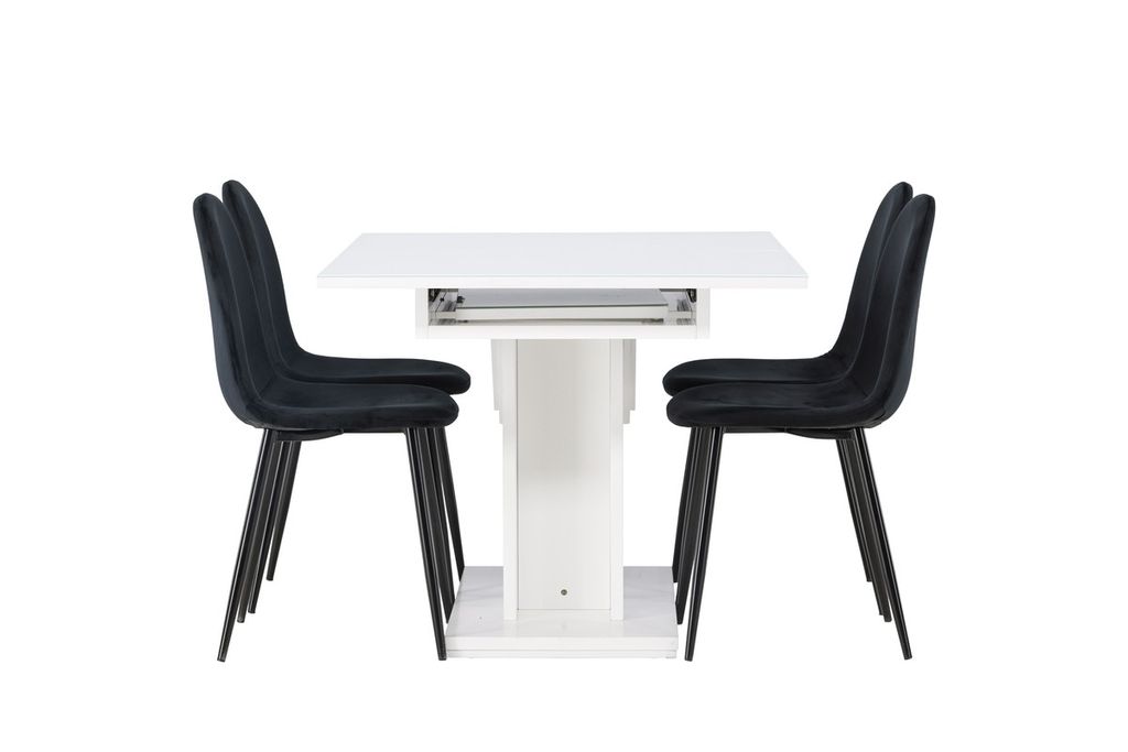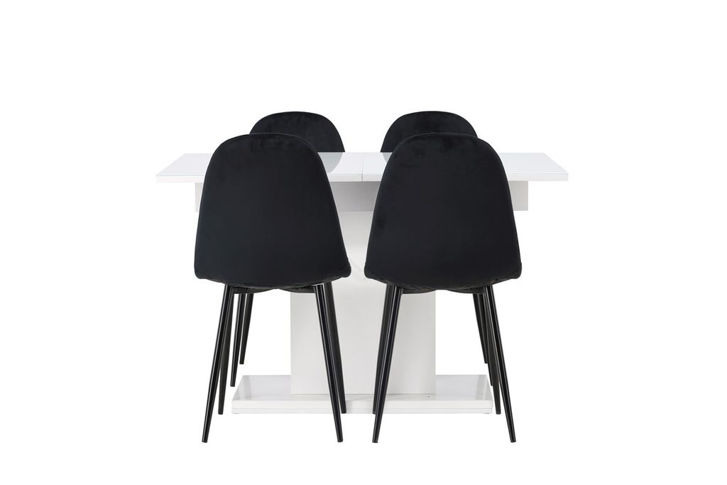 Venture Home Polar & Pluto 4 st Matstolar Svart + Rektangulärt Matbord 120 x 90 Vit