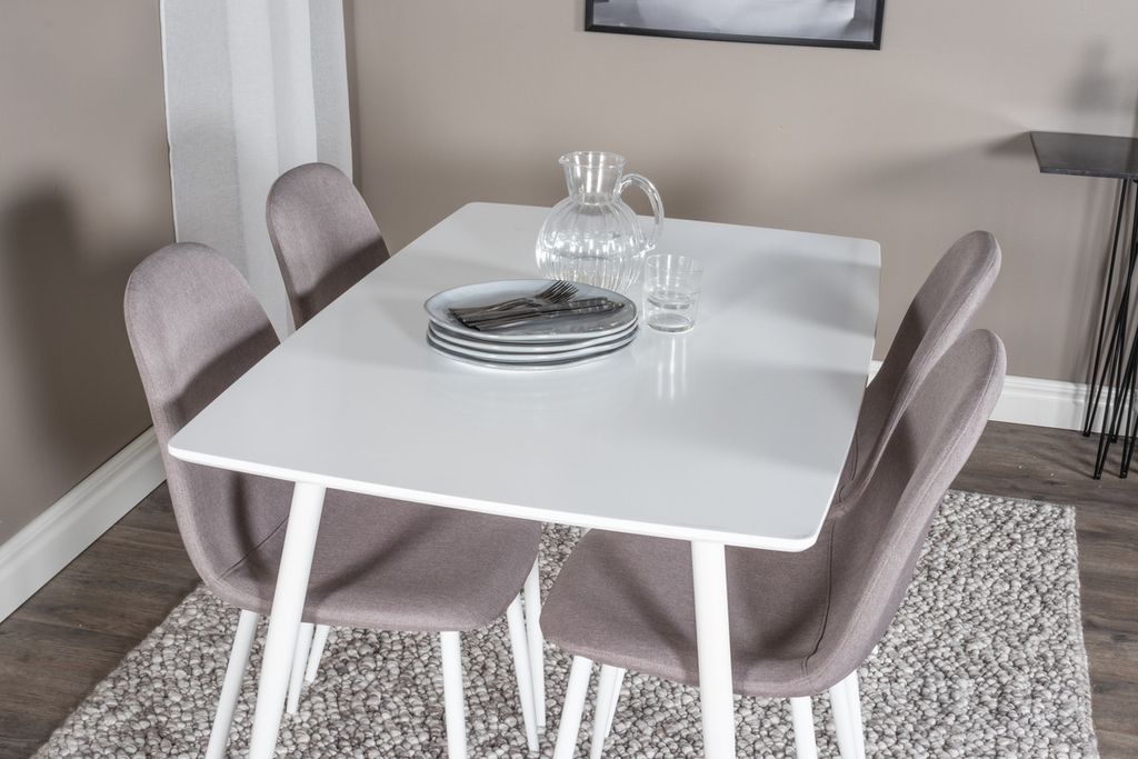 Venture Home Polar Rektangulärt Matbord 120 x 75 Vit + 6 st Matstolar Grå