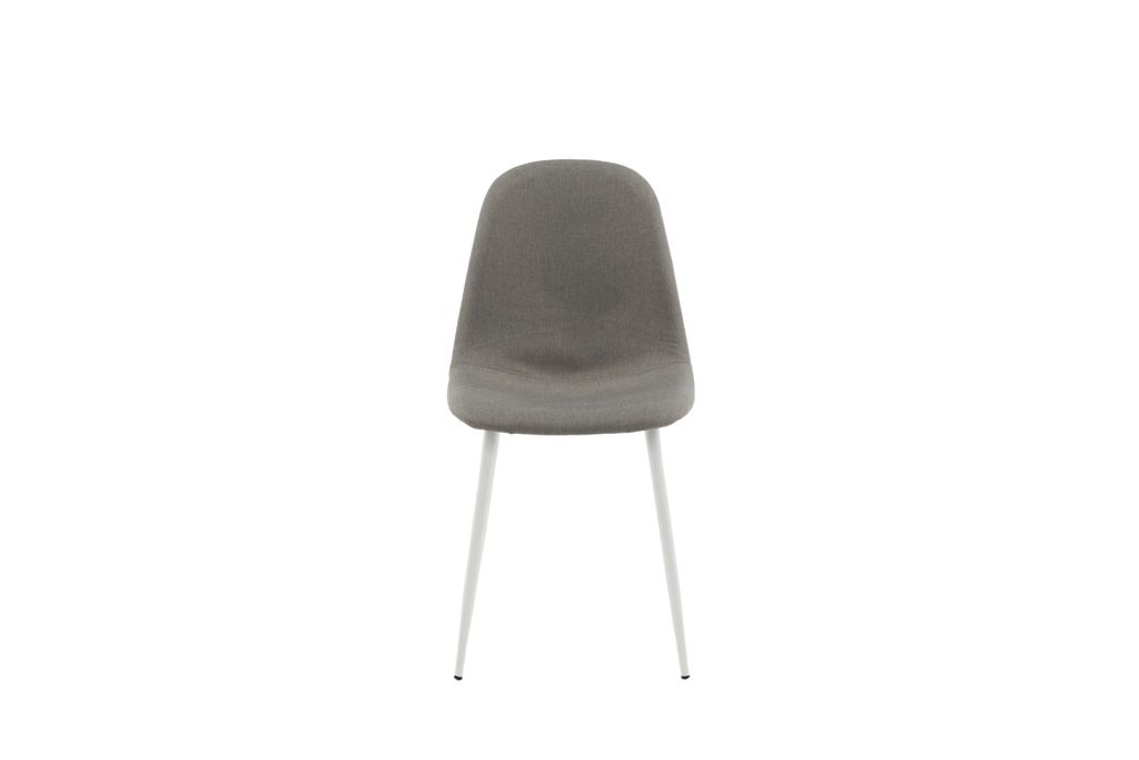 Upptäck den eleganta Venture Home Polar Stol - en perfekt kombination av modern design och komfort. Denna stilrena stol har en helklädd design med en lätt rundad rygg och sits, klädd i grått polyestertyg som ger ett mjukt och inbjudande intryck. Stolen vilar på robusta ben i vit pulverlackerad metall, vilket skapar en fräsch och tidlös look.