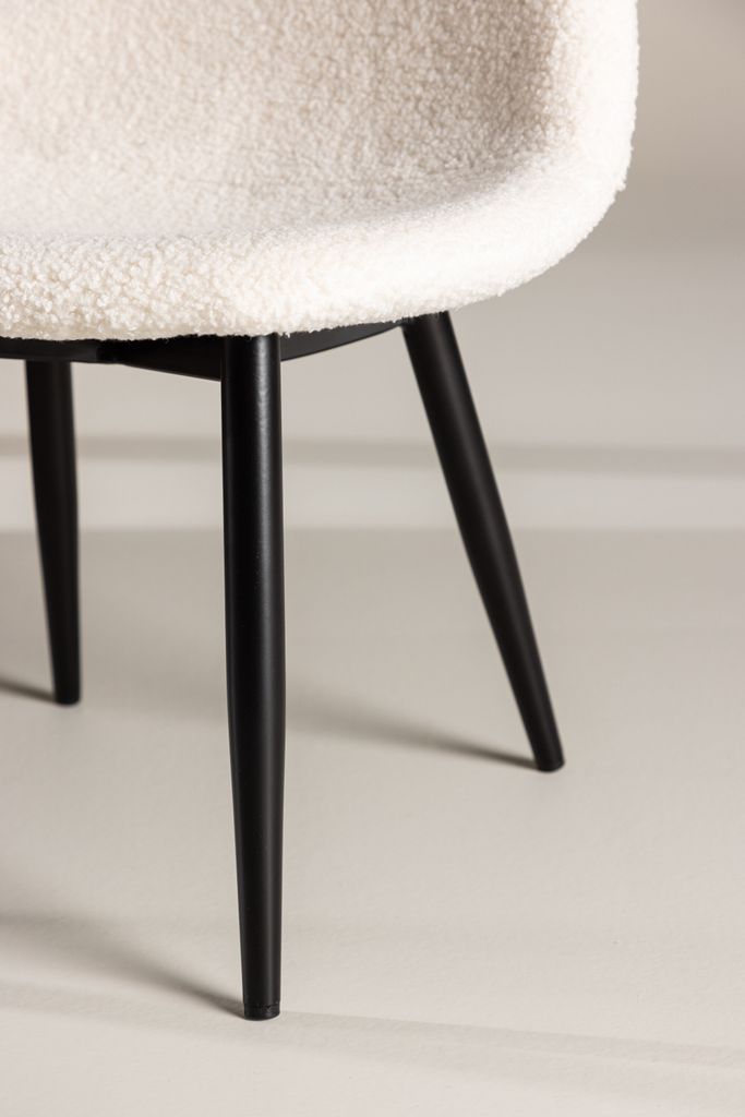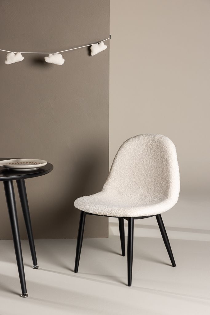 Upptäck Polar barnstolen från Venture Home, där stil möter komfort i en design perfekt för alla barnrum. Denna stol har en sits i elegant vit färg, tillverkad av mjukt teddymaterial, vilket ger en extra touch av komfort och värme. De svarta benen i klassisk stil kompletterar den tidlösa estetiken och ger en stabil grund.