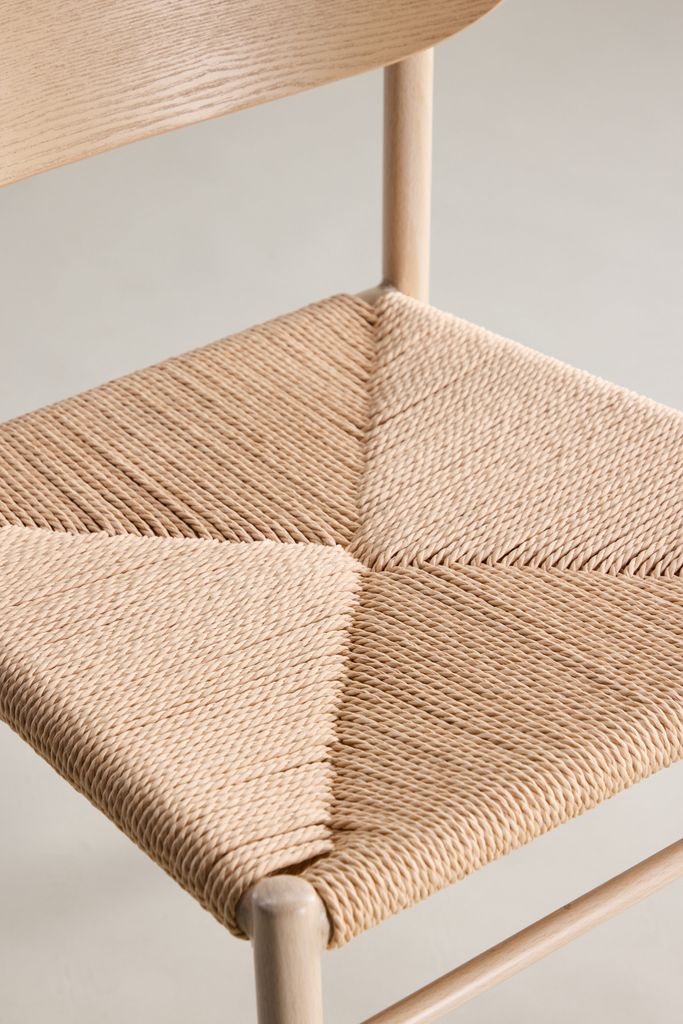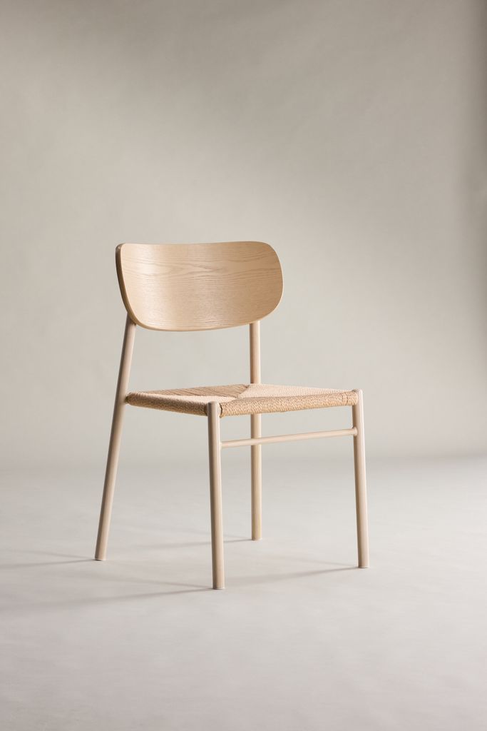 Polly matstol kombinerar enkelhet och stil med sin beige färg och flätade sits i rep, perfekt för både vardagsmiddagar och långa samtal.