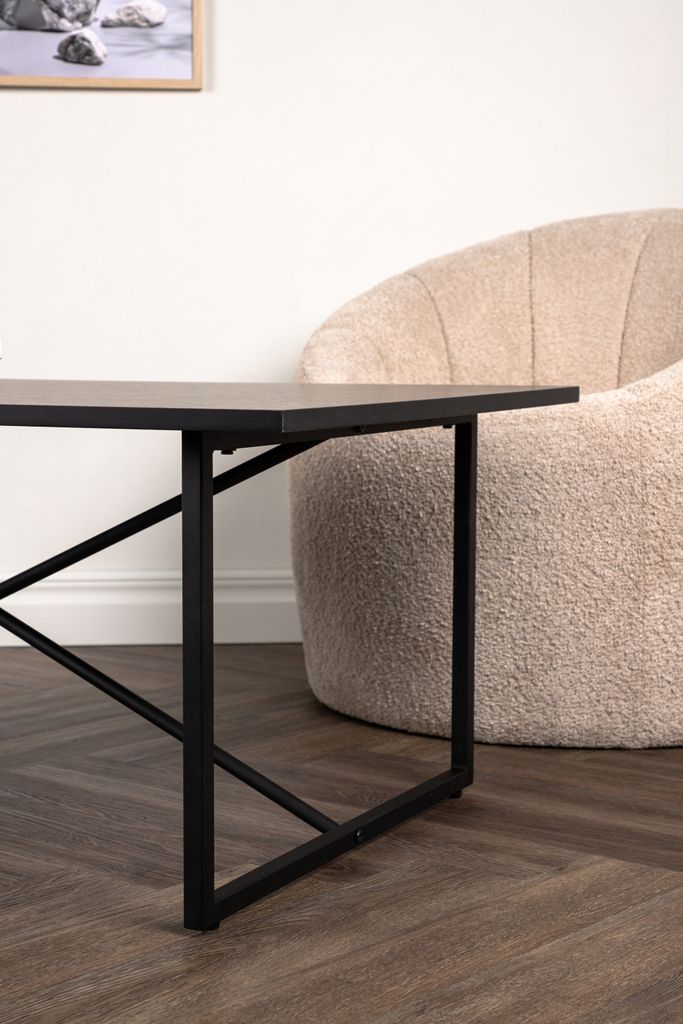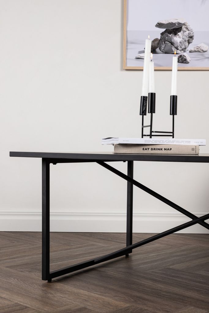 Venture Home Pryor soffbord kombinerar skandinavisk enkelhet med moderna inslag, vilket skapar ett stilsäkert och tidlöst blickfång i ditt vardagsrum. Bordsskivan är tillverkad av svart MDF som ger en elegant och robust yta, medan det svarta stålunderredet med dekorativa kryssdetaljer erbjuder stabilitet och en iögonfallande estetik.