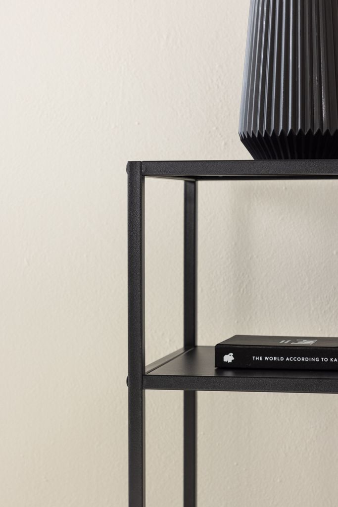 Den kvadratiska designen och den gedigna stålramen ger bordet en modern och tidlös känsla, perfekt för den skandinaviska inredningen. Sidobordet erbjuder ett högt hyllplan som ger gott om utrymme för dina favoritböcker, dekorativa föremål eller växter.