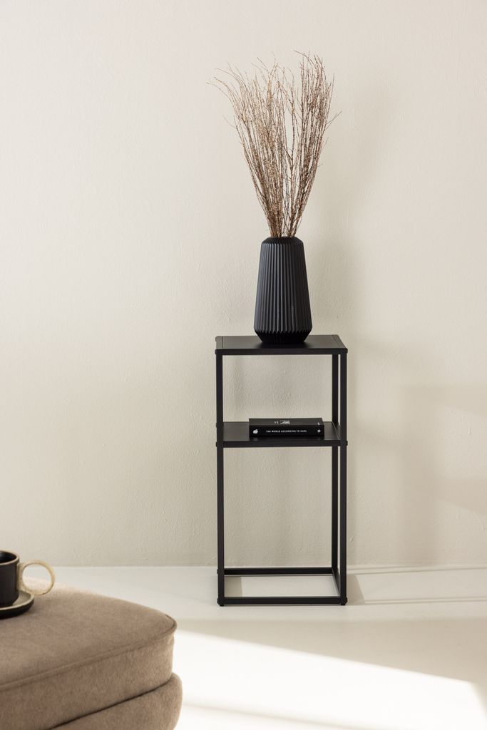 Elegant och minimalistiskt sidobord i svart stål, perfekt för varje rum med stil och funktion.
