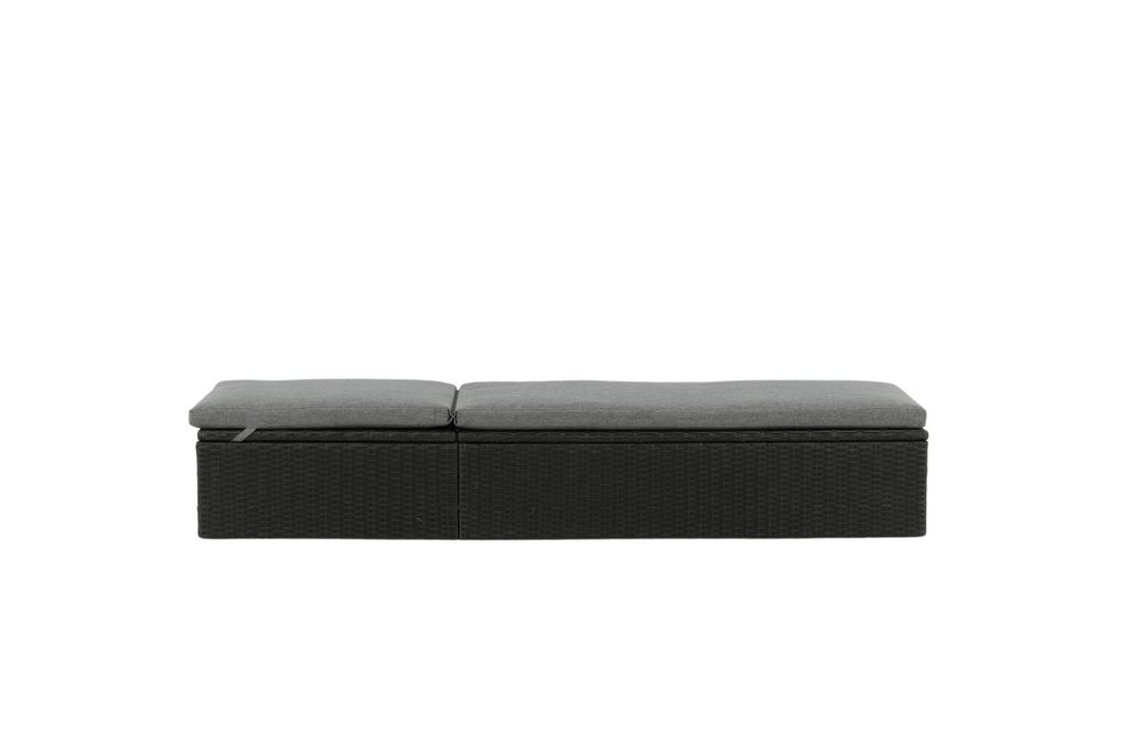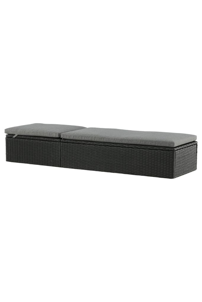 Lyxig, svart konstrotting solstol med justerbart ryggstöd och grå dyna för ultimat komfort på uteplatsen.