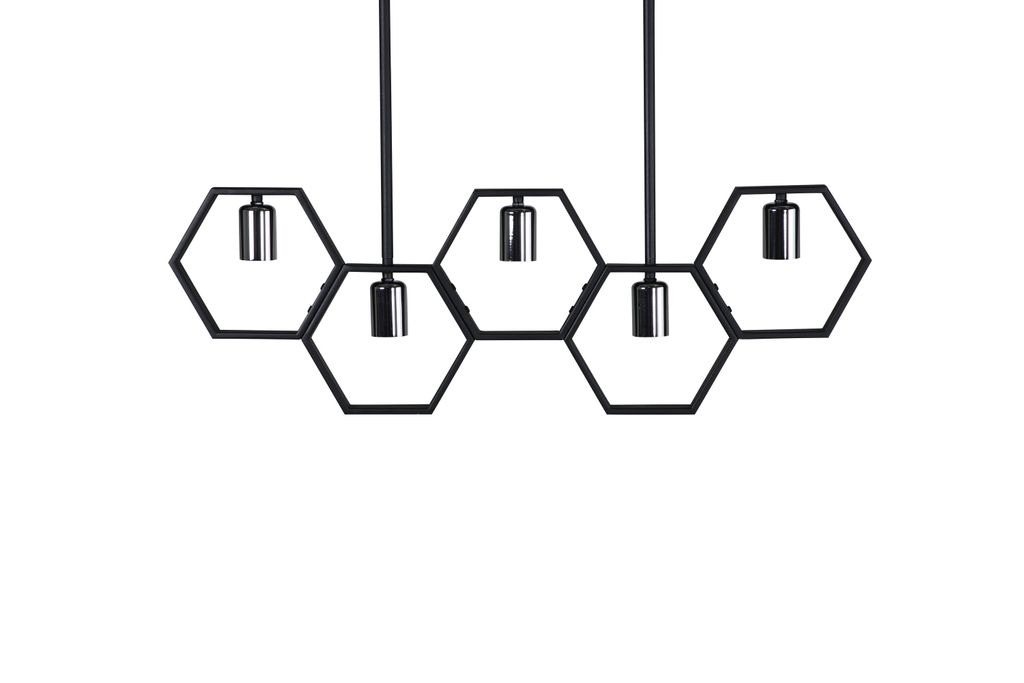 Den geometriska designen med hexagonala former ger lampan en unik och iögonfallande look, som gör den till ett utmärkt val att placera över matbordet eller i vardagsrummet. Med en total höjd på 26 cm och en bredd på 80 cm, passar den perfekt för både små och stora utrymmen.