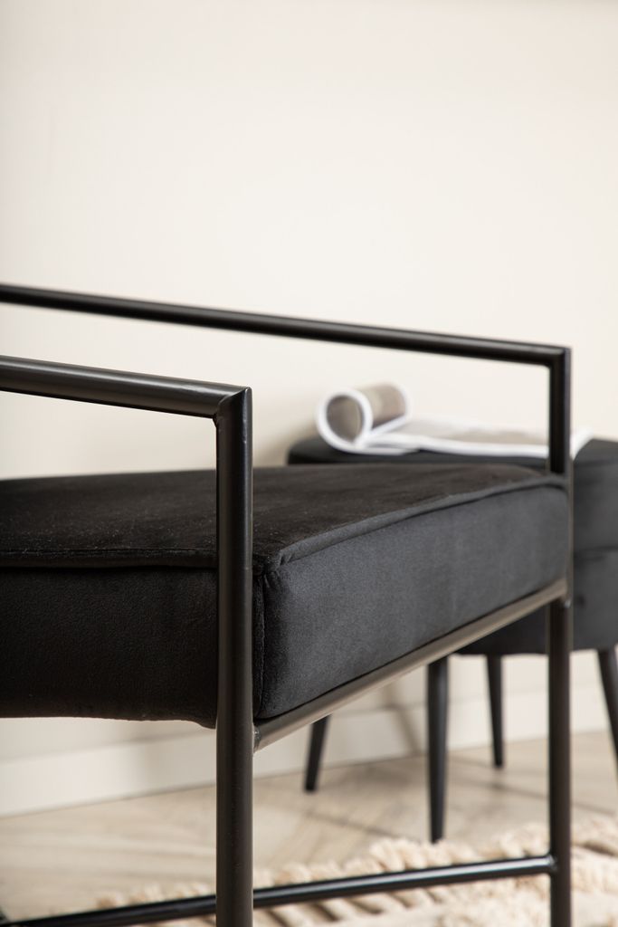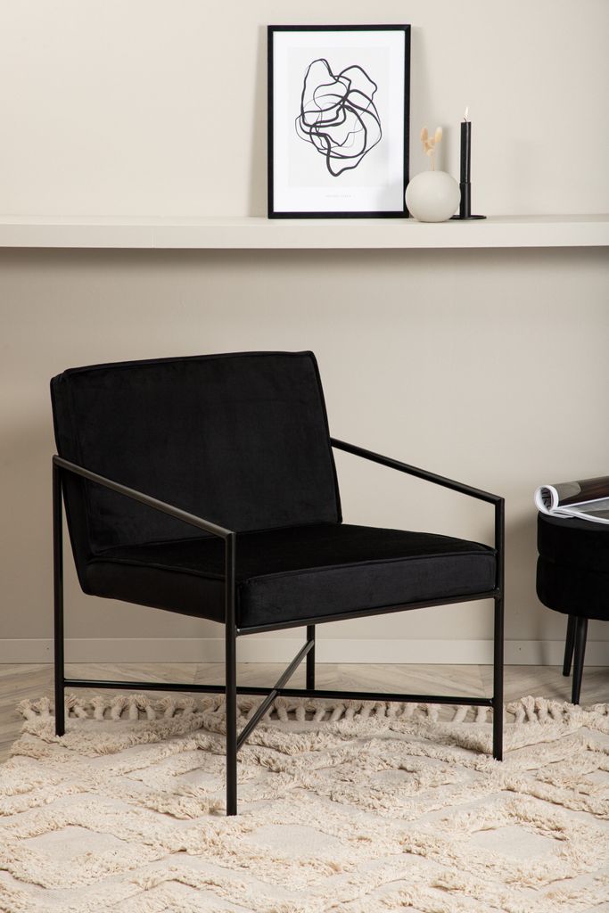 Fåtöljens smala stomme är elegant svetsad i svart pulverlackerad metall, vilket bidrar till en stilren och modern look. Placera fåtöljen som en solitär eller tillsammans med din soffgrupp för att skapa en inbjudande atmosfär.