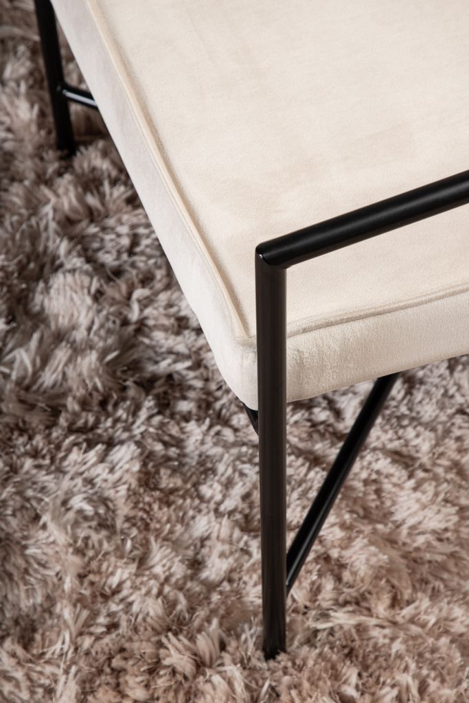 Skapa ett stilrent och modernt intryck i ditt vardagsrum med Venture Home Rakel Fåtölj. Denna fåtölj är en perfekt kombination av skandinavisk minimalism och hög komfort. Den är klädd i en sammetslen beige textil som ger en lyxig touch, medan den smala stommen i svart pulverlackerad metall ger en elegant kontrast.