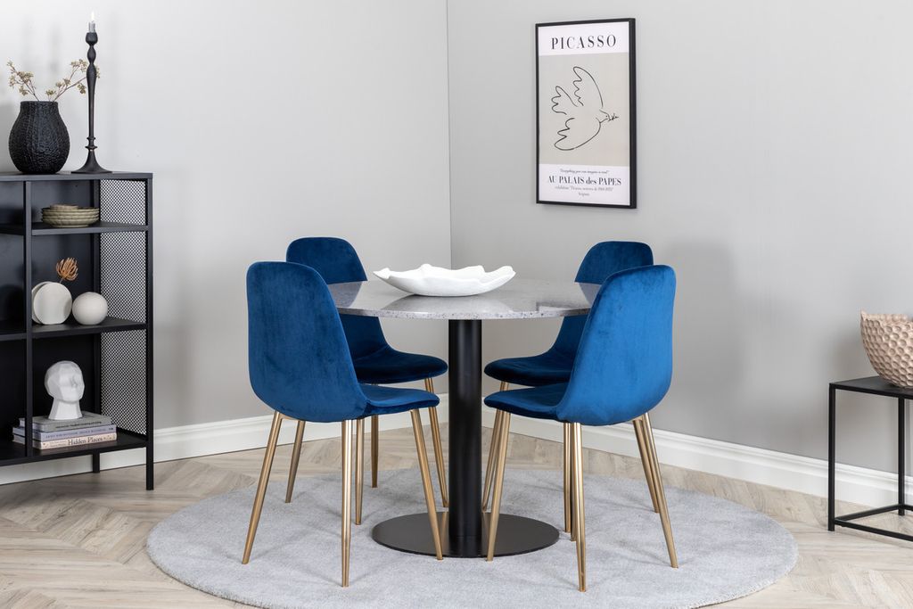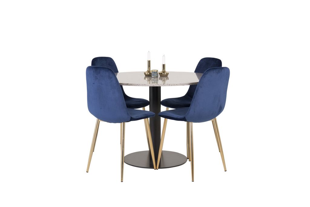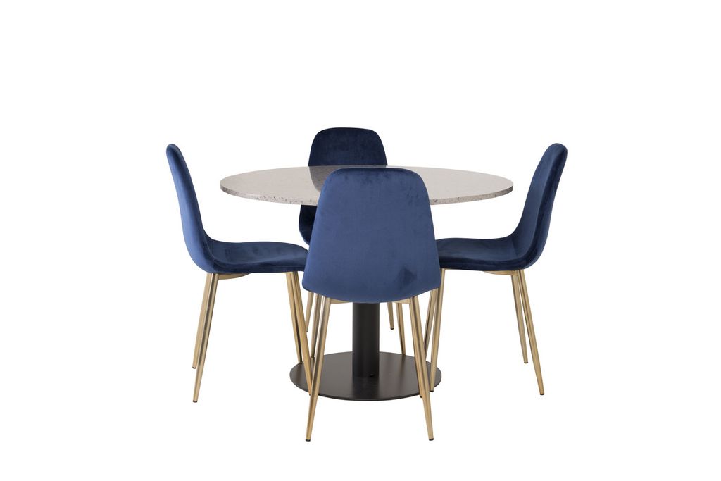 Venture Home Razzia & Polar Runt Matbord ⌀106 Grå + 4 st Matstolar Blå