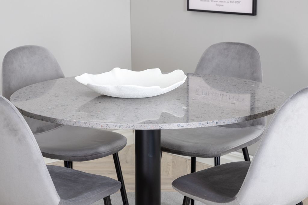 Venture Home Razzia & Polar Runt Matbord ⌀106 Grå + 4 st Matstolar Grå