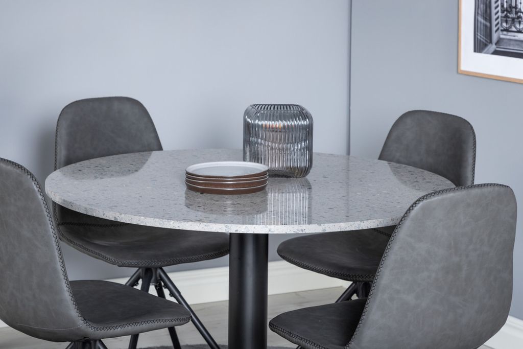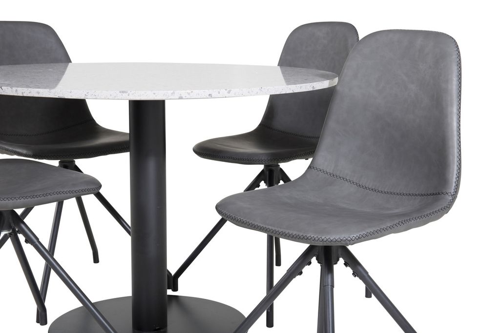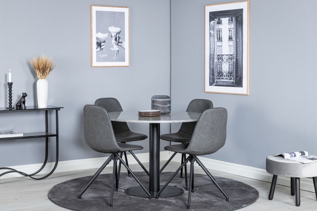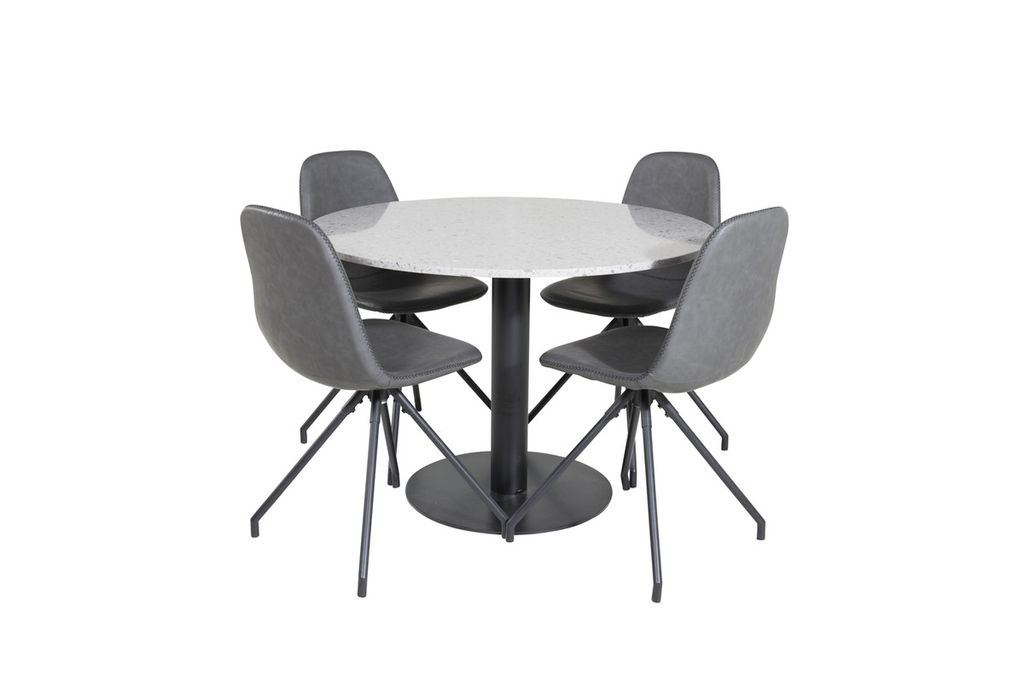 Venture Home Razzia & Polar Runt Matbord ⌀106 Grå + 4 st Matstolar Svart
