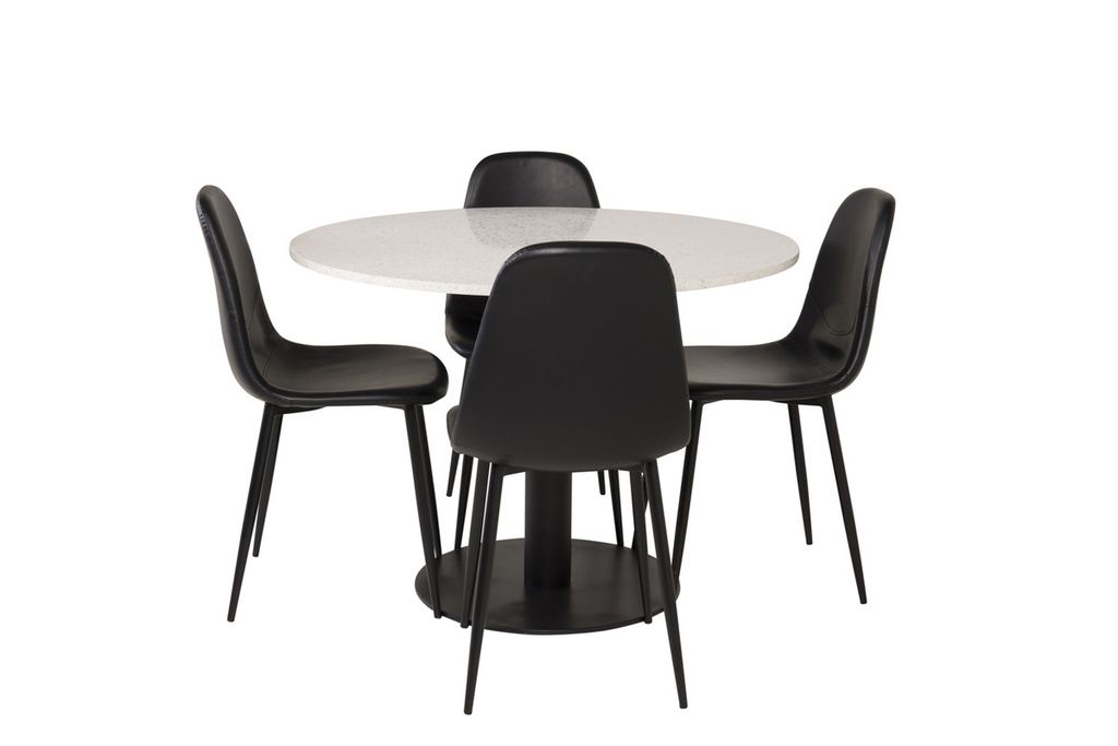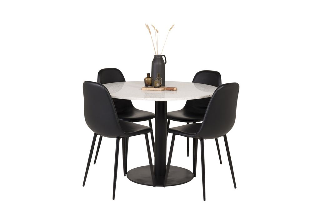 Venture Home Razzia & Polar Runt Matbord ⌀106 Vit + 4 st Matstolar Svart