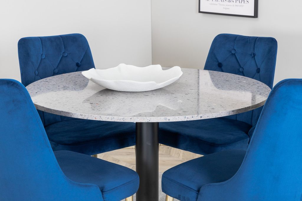 Venture Home Razzia & Velvet Deluxe Runt Matbord ⌀106 Grå + 4 st Matstolar Blå