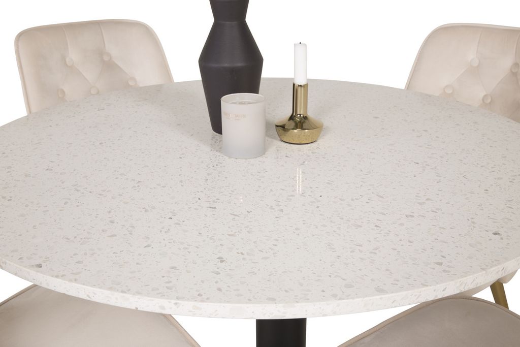 Venture Home Razzia & Velvet Deluxe Runt Matbord ⌀106 Vit + 4 st Matstolar Beige
