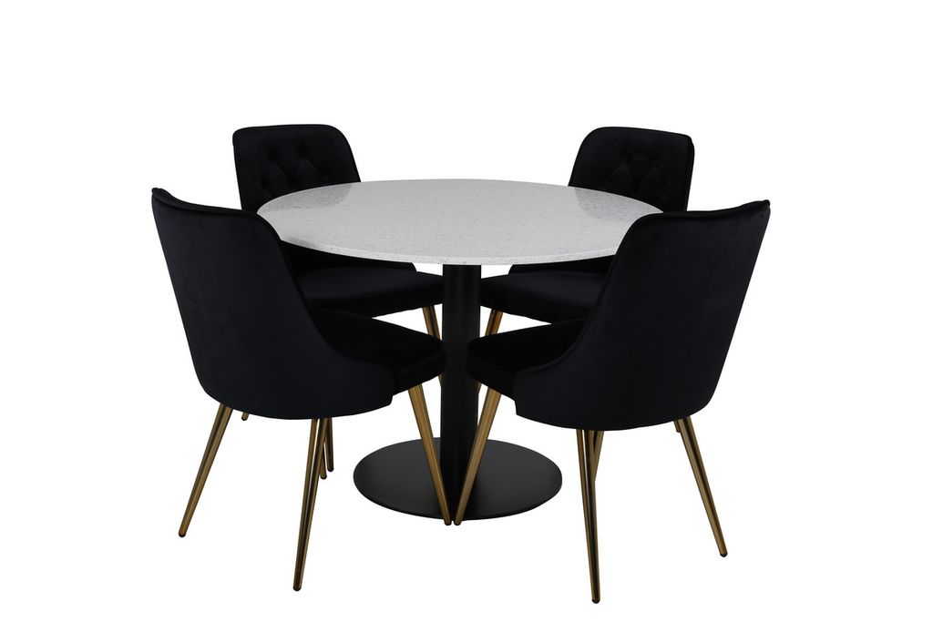 Venture Home Razzia & Velvet Deluxe Runt Matbord ⌀106 Vit + 4 st Matstolar Svart