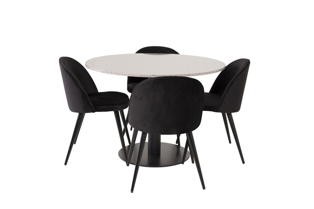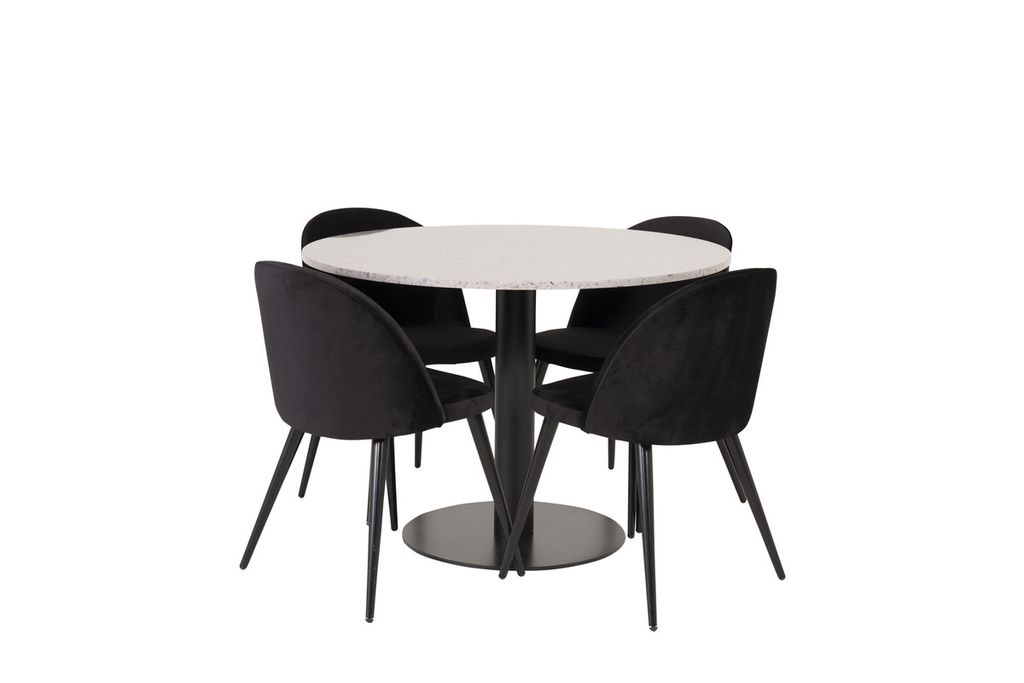 Venture Home Razzia & Velvet Runt Matbord ⌀106 Grå + 4 st Matstolar Svart