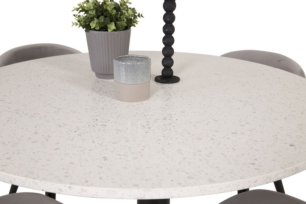 Venture Home Razzia & Velvet Runt Matbord ⌀106 Vit + 4 st Matstolar Grå