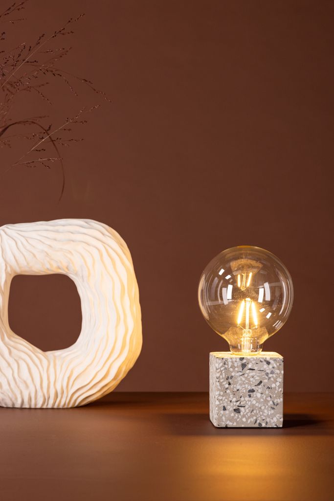 Rilche bordslampa kombinerar skandinavisk design med terrazzo-bas för ett stilrent och lugnt intryck i ditt hem.