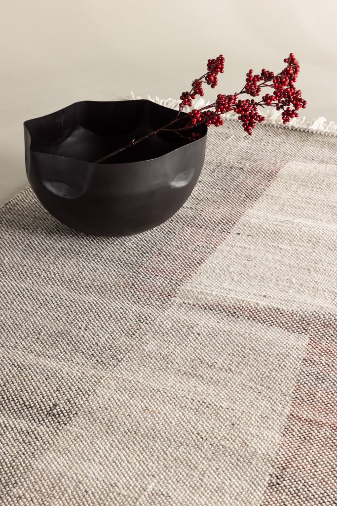 Tillverkad av polyester och ull, erbjuder Rio-mattan både komfort och hållbarhet. Dess korta lugg ger en modern känsla och är enkel att underhålla. Det abstrakta mönstret i en blandning av beige, vit, grå och röd färg skapar en unik och exklusiv look, medan de ljusa fransarna förstärker mattans estetiska värde.