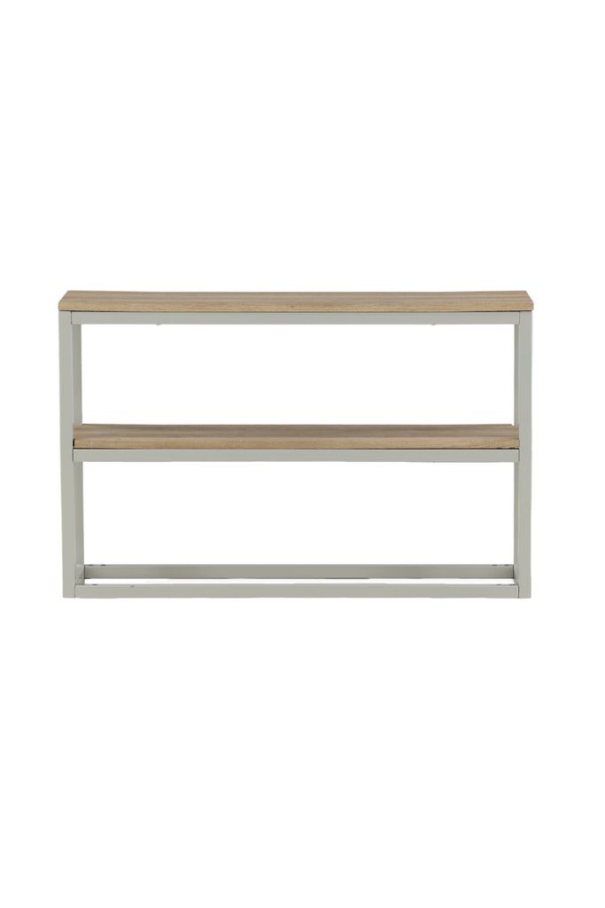 Bordets tidlösa färgkombination av vit och naturlig träfinish gör det enkelt att matcha med olika inredningsstilar. De två hyllplanen ger gott om plats för enklare förvaring och dekoration, vilket gör det idealiskt för placering i sovrum, hall eller vardagsrum.