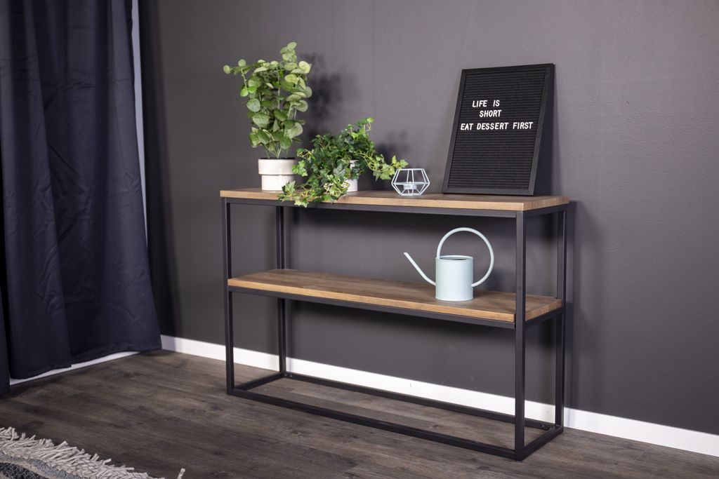 Upptäck Venture Home Rise Avlastningsbord, en perfekt kombination av klassisk och modern design. Med sina två hyllplan i en elegant teak-look och en robust svart stålram, erbjuder detta bord både stil och funktion. Dess jordnära, tidlösa design gör det till en trendsäker förvaringslösning som passar i alla hem.