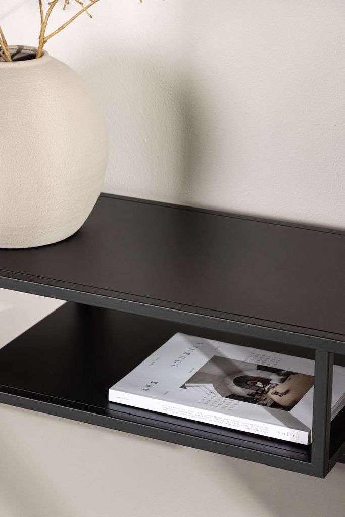 Under toppskivan finner du en smart och diskret förvaringshylla. Här kan du enkelt organisera dina TV-tillbehör såsom fjärrkontroller och spelkonsoler på ett prydligt sätt.