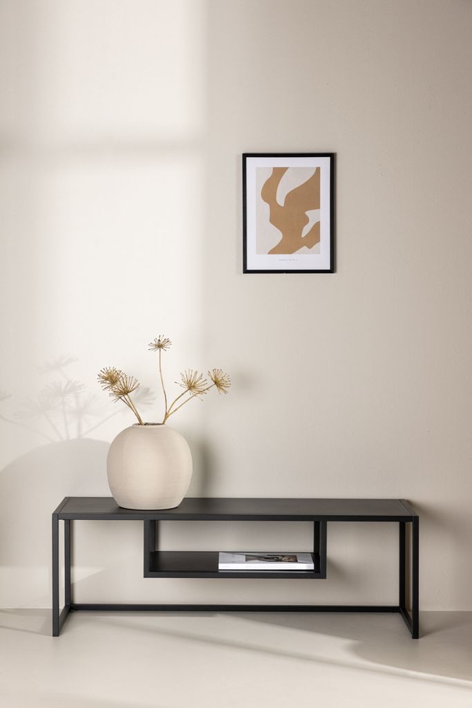 Välkommen till en ny era av inredning med Riverside TV-bänken från Venture Home. Tillverkad i högkvalitativt svart stål, kombinerar denna möbel elegant design med praktisk funktionalitet för att ge ditt vardagsrum en sofistikerad och modern känsla.