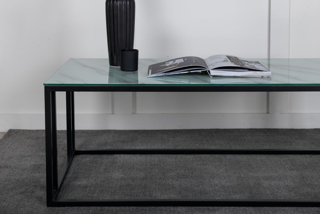 Rock soffbord från Venture Home erbjuder en stilren och tidlös design som passar perfekt i moderna hem. Bordsskivan är tillverkad av glas med en elegant marmorerad yta, vilket ger en sofistikerad touch till ditt vardagsrum. Underredet i svart stål bidrar med en robust och modern känsla.
