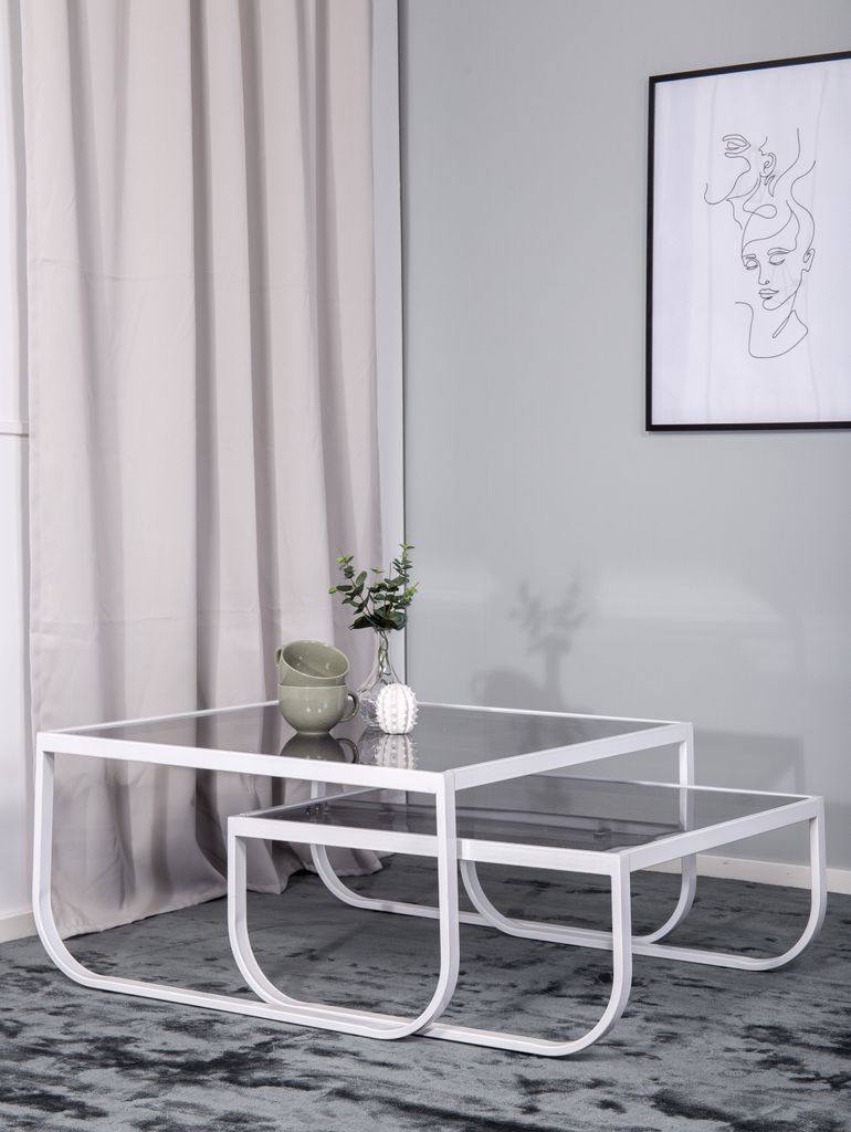Borden är konstruerade med robust stål som ger hållfasthet, medan de eleganta glasskivorna skapar en ljus och rymlig känsla. Den moderna designen, med sina enkla och rena linjer, framhäver kontrasten mellan stålets och glasets skönhet, vilket gör dem till centrala inredningsdetaljer i ditt vardagsrum.