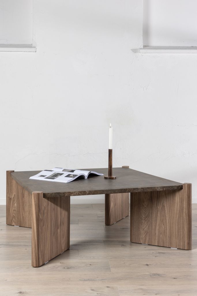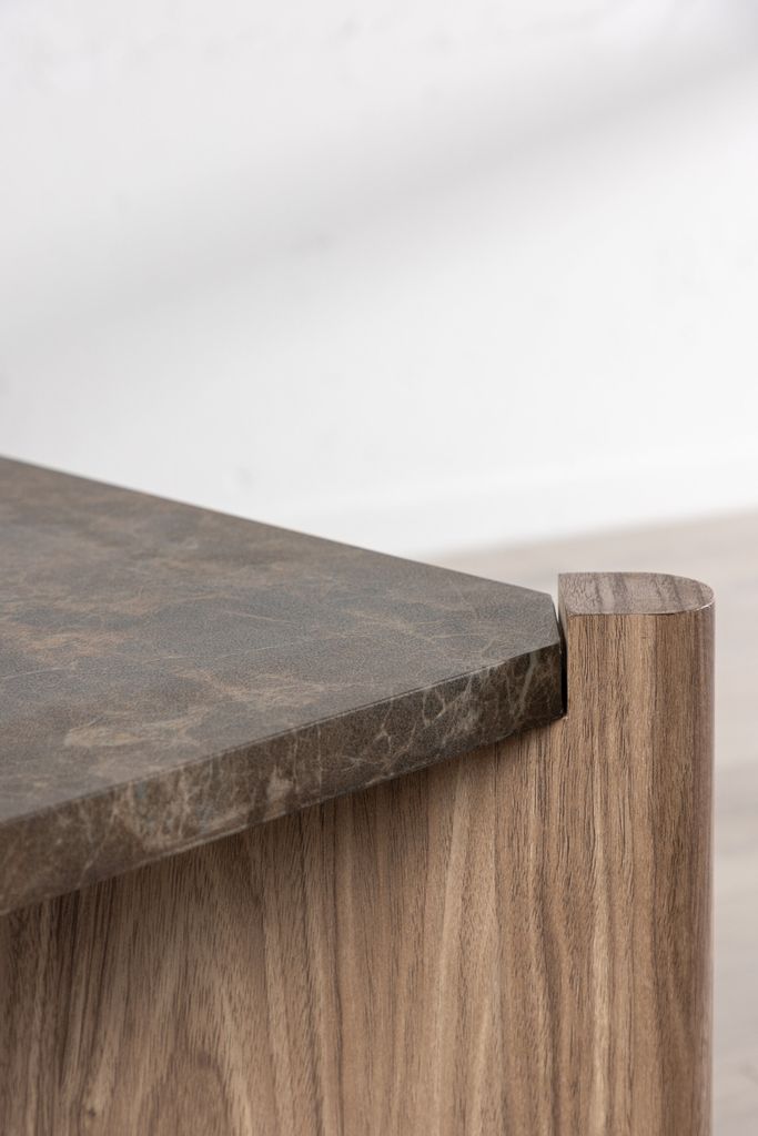 Rogaland soffbord i brun MDF med marmorliknande yta, skapar elegans och värme i ditt hem.