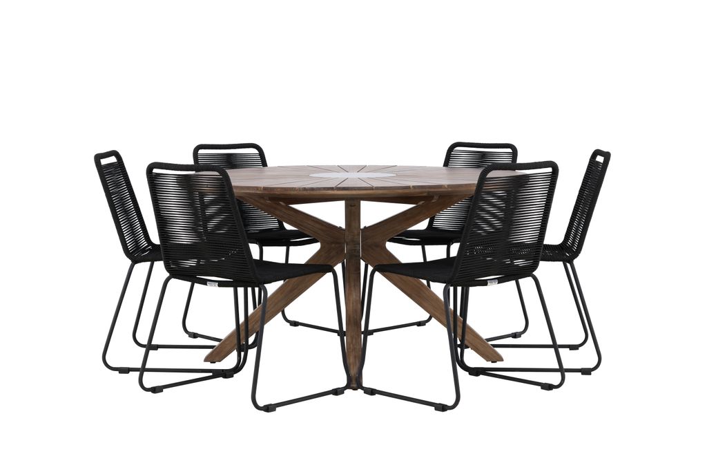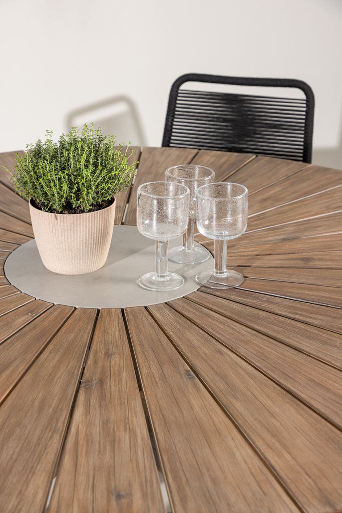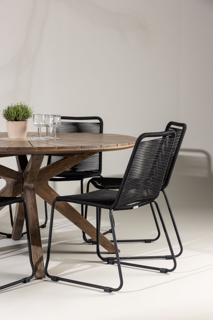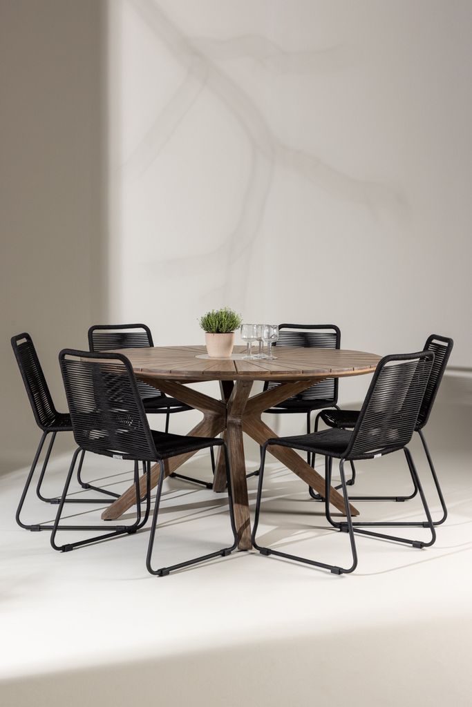 Skapa en atmosfär av elegans och samvaro med Venture Home Rosario Rund Matgrupp. Denna stilfulla matgrupp kombinerar sex svarta Lindos stolar med det imponerande Rosario bordet, tillverkat av hållbart acaciaträ. Bordet har en generös diameter på 140 cm, vilket erbjuder gott om plats för familj och vänner. Den naturliga bruna färgen och bordets robusta konstruktion ger en känsla av tidlös elegans.
