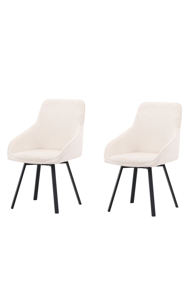 Stolarnas svartmålade metallben är lätt utsvängda, vilket ger stabilitet och en modern touch. Den praktiska snurrfunktionen gör det enkelt att röra sig smidigt vid bordet, vilket är idealiskt för sociala tillfällen.
