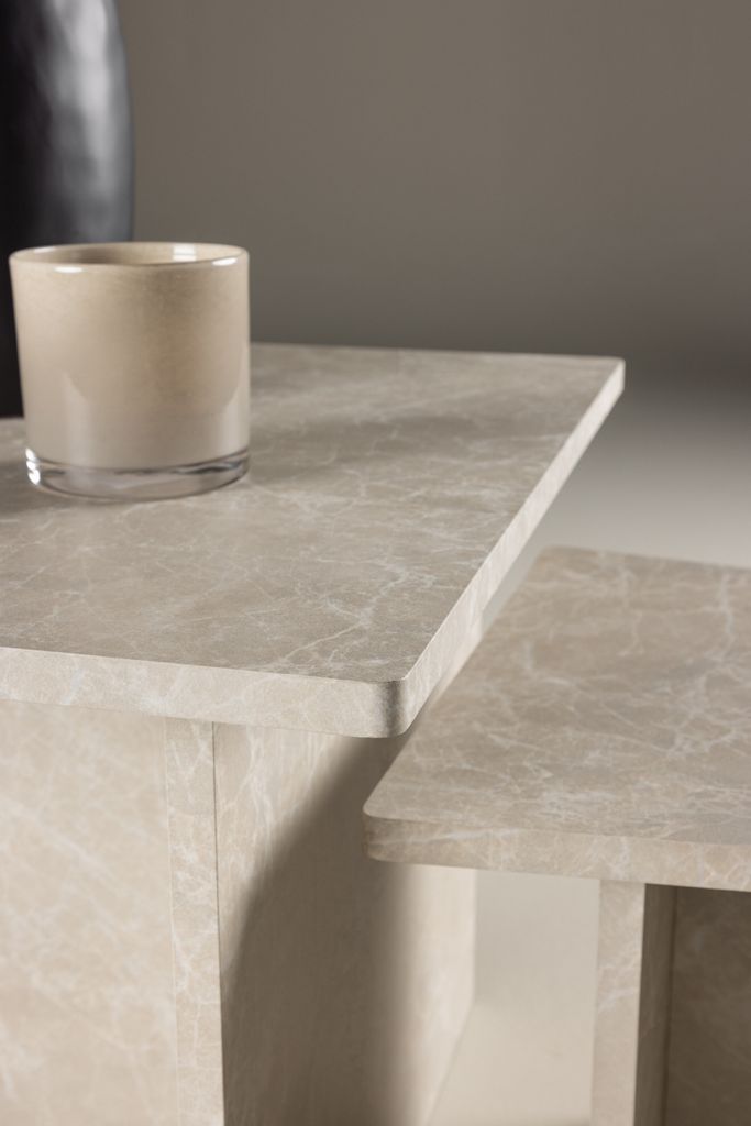 Möt Sala - det moderna soffbordet som adderar en touch av lyx till ditt vardagsrum. Tillverkat av MDF-material men med en elegant marmorlook, ger Sala en sofistikerad och exklusiv känsla till din heminredning.